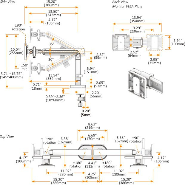 Настольный кронштейн для двух мониторов с системой слайдер.