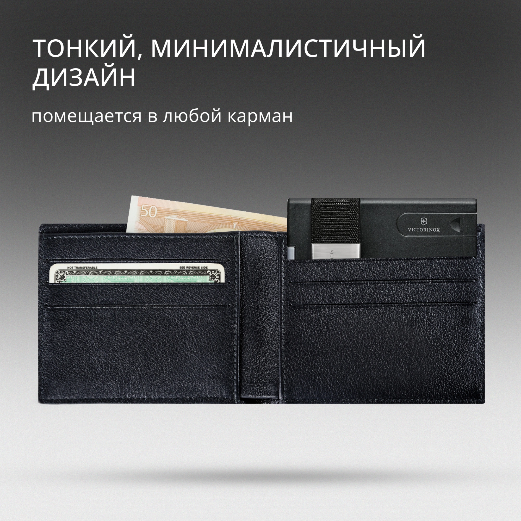 имеет запатентованную систему скольжения, которая позволяет легко вставлять карты и доставать одним движением