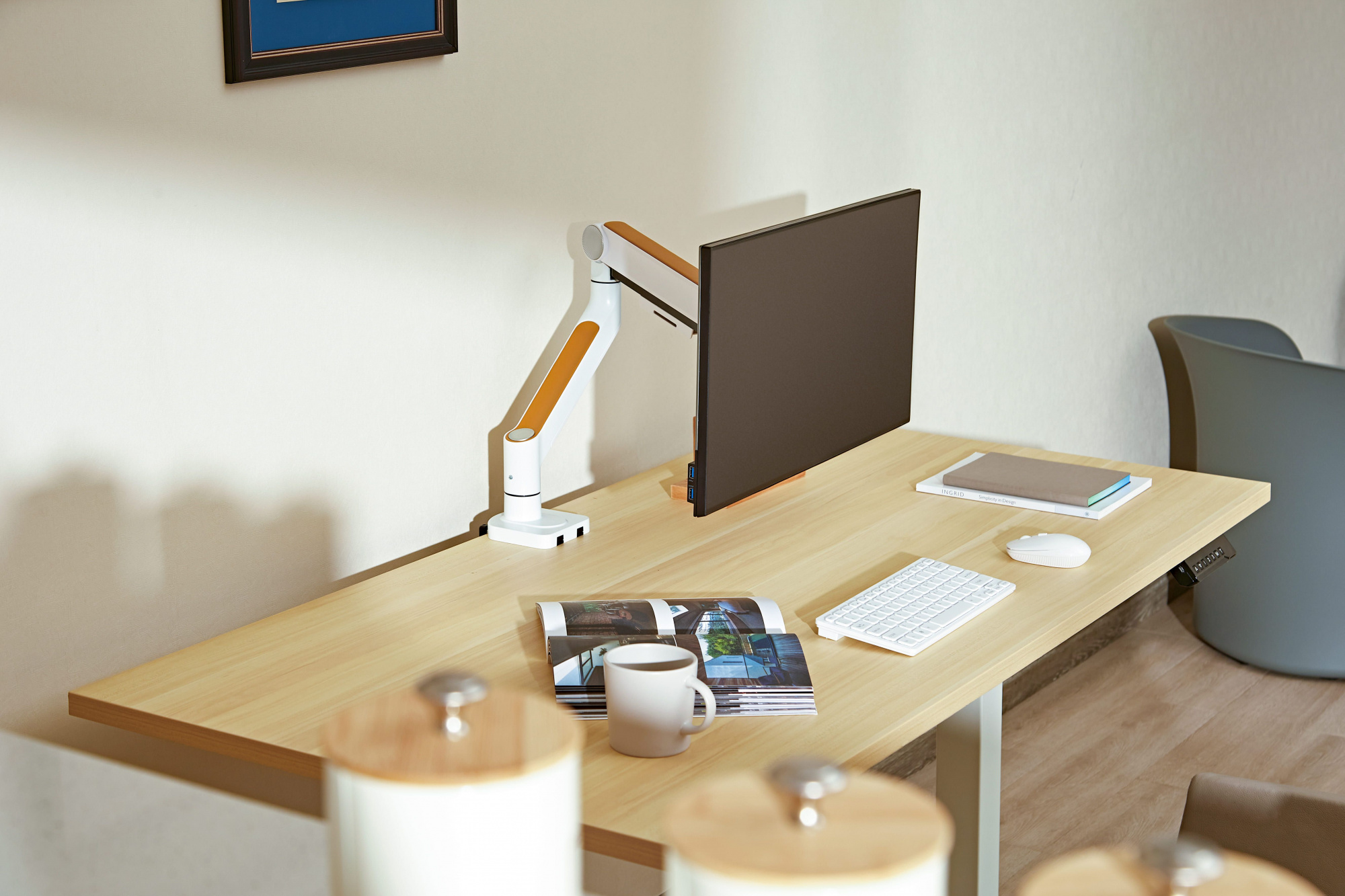 Настольный кронштейн для монитора с системой газ-лифт. Встроенный пружинный механизм натяжения поможет для идеальной регулировки веса.