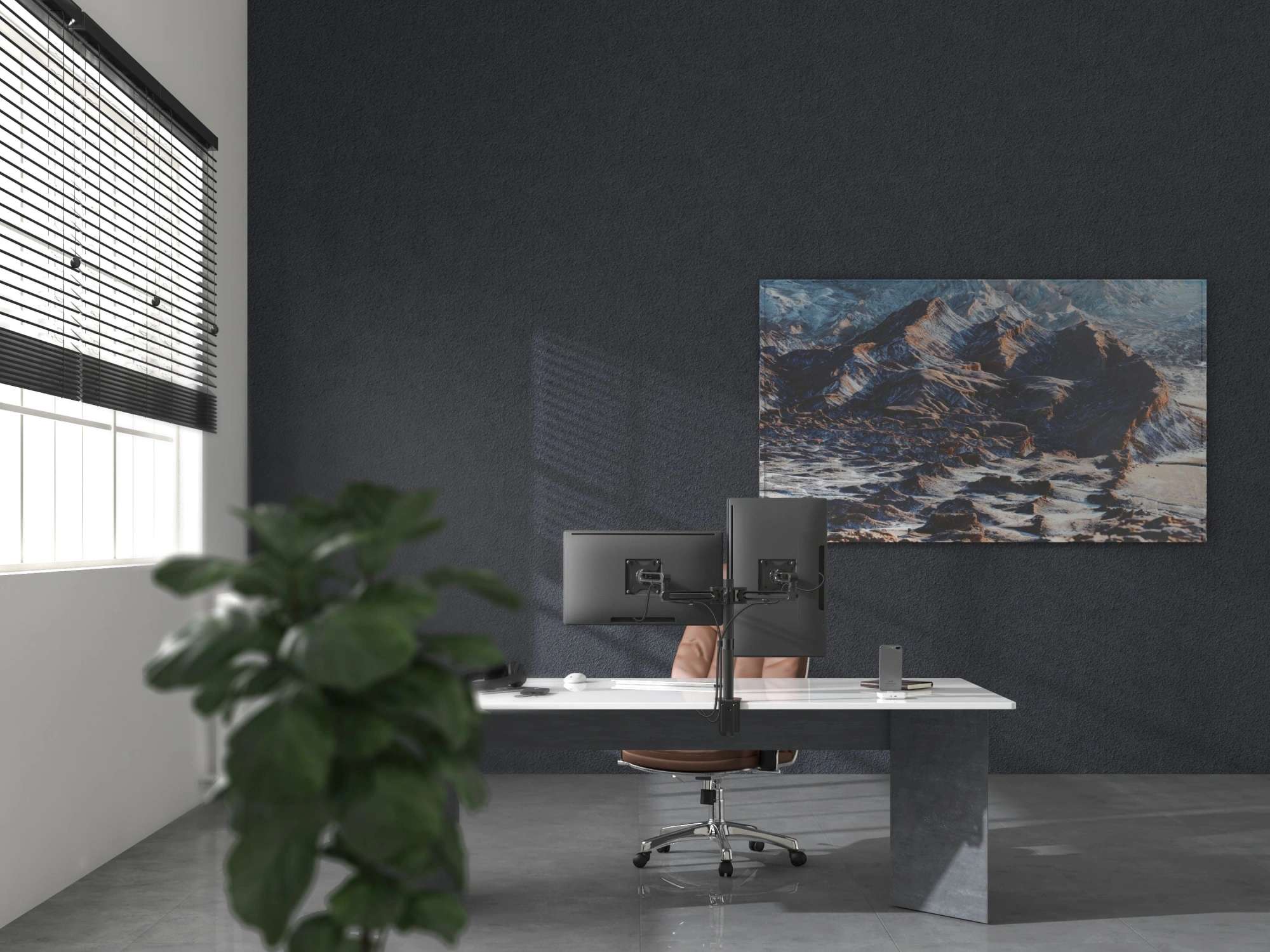 Настольный кронштейн для монитора с системой газ-лифт. Конструкция со свободным наклоном позволяет легко регулировать наклон вперед или назад для лучшего обзора и уменьшения бликов.