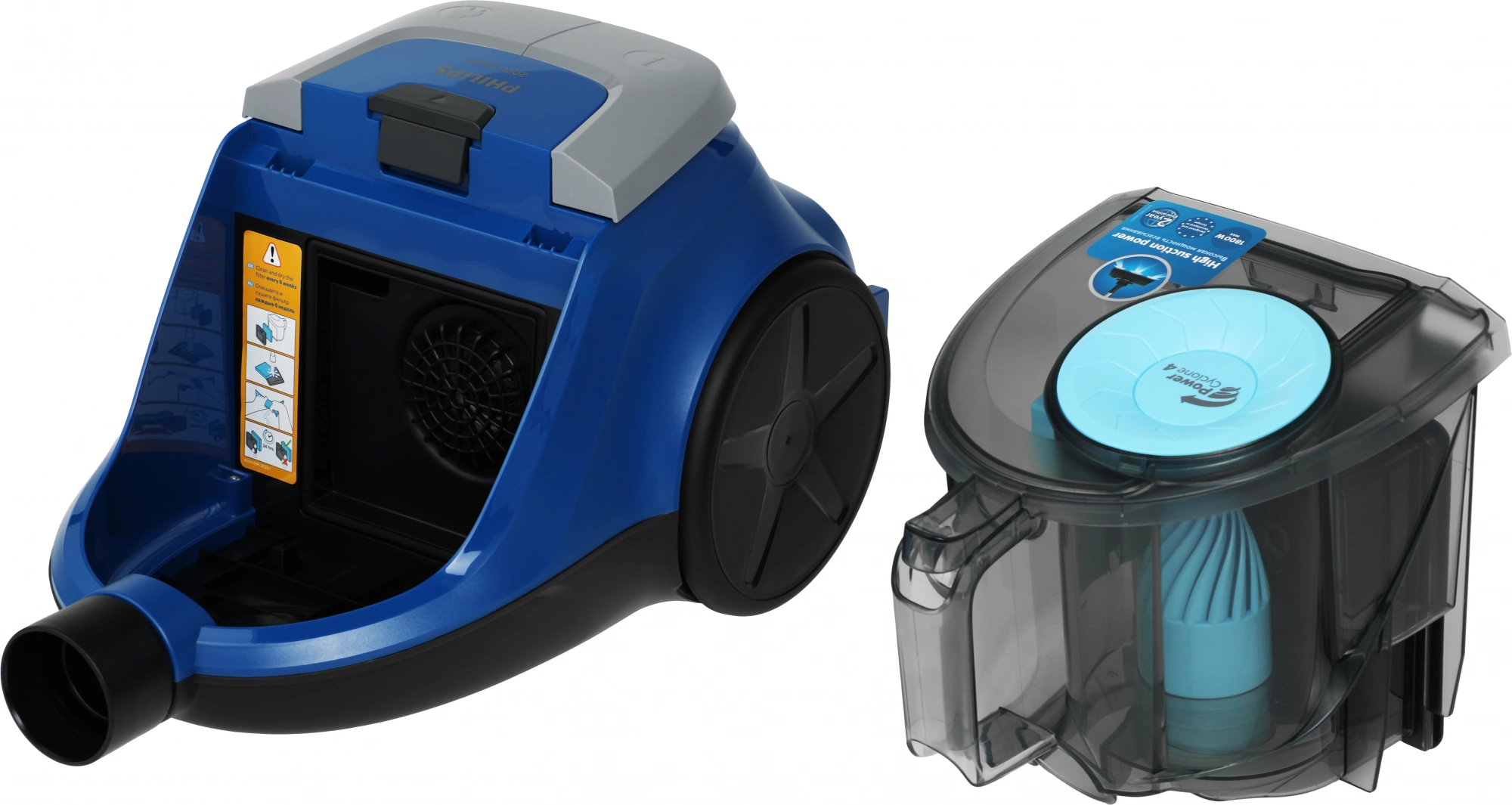 легко очищаемый пылесборник, поворачивающиеся колеса, шланг