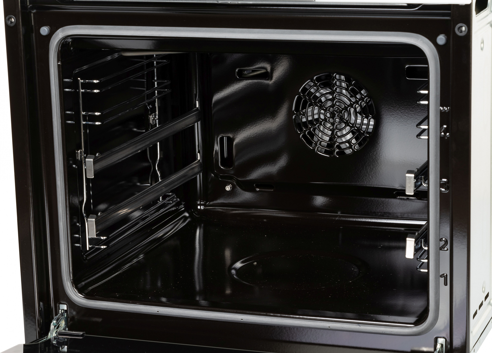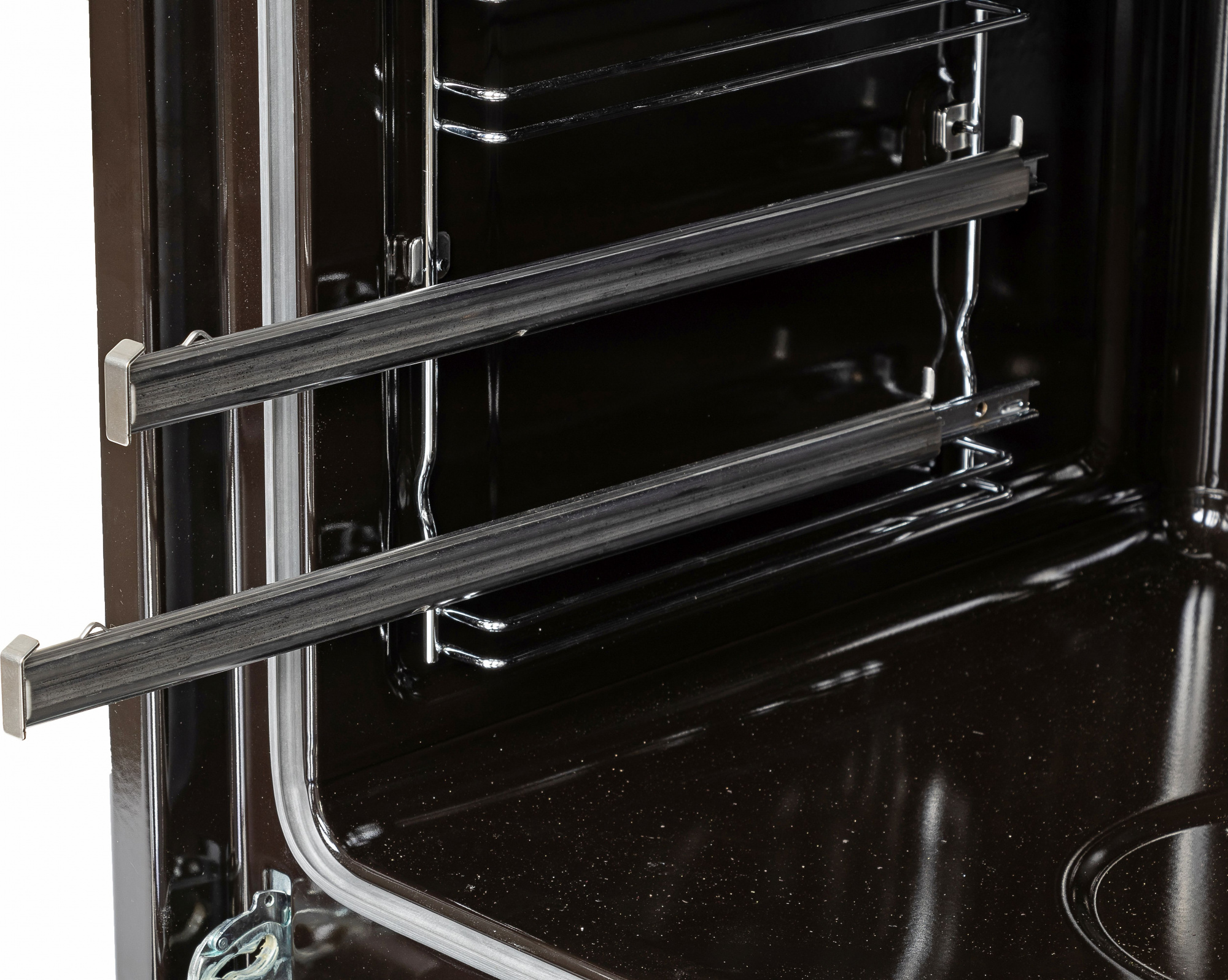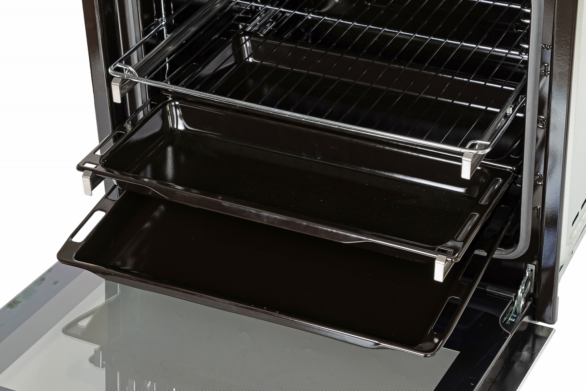 дисплей, полностью стеклянная внутренняя поверхность дверцы духовки, телескопические направляющие, утапливаемые переключатели
