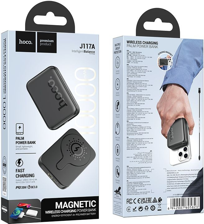 Аккумулятор внешний с беспроводной зарядкой HOCO J117A, Esteem, 10000mAh, PD20W