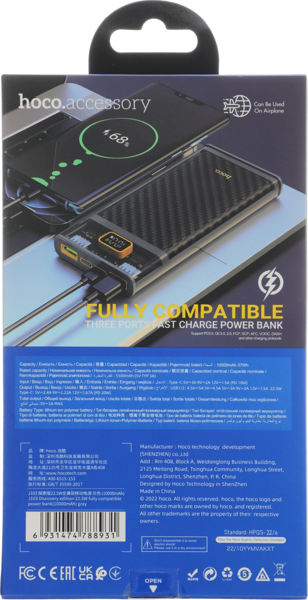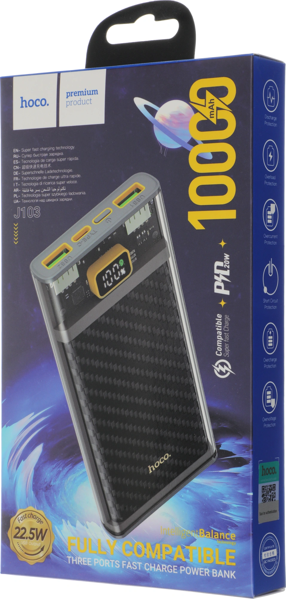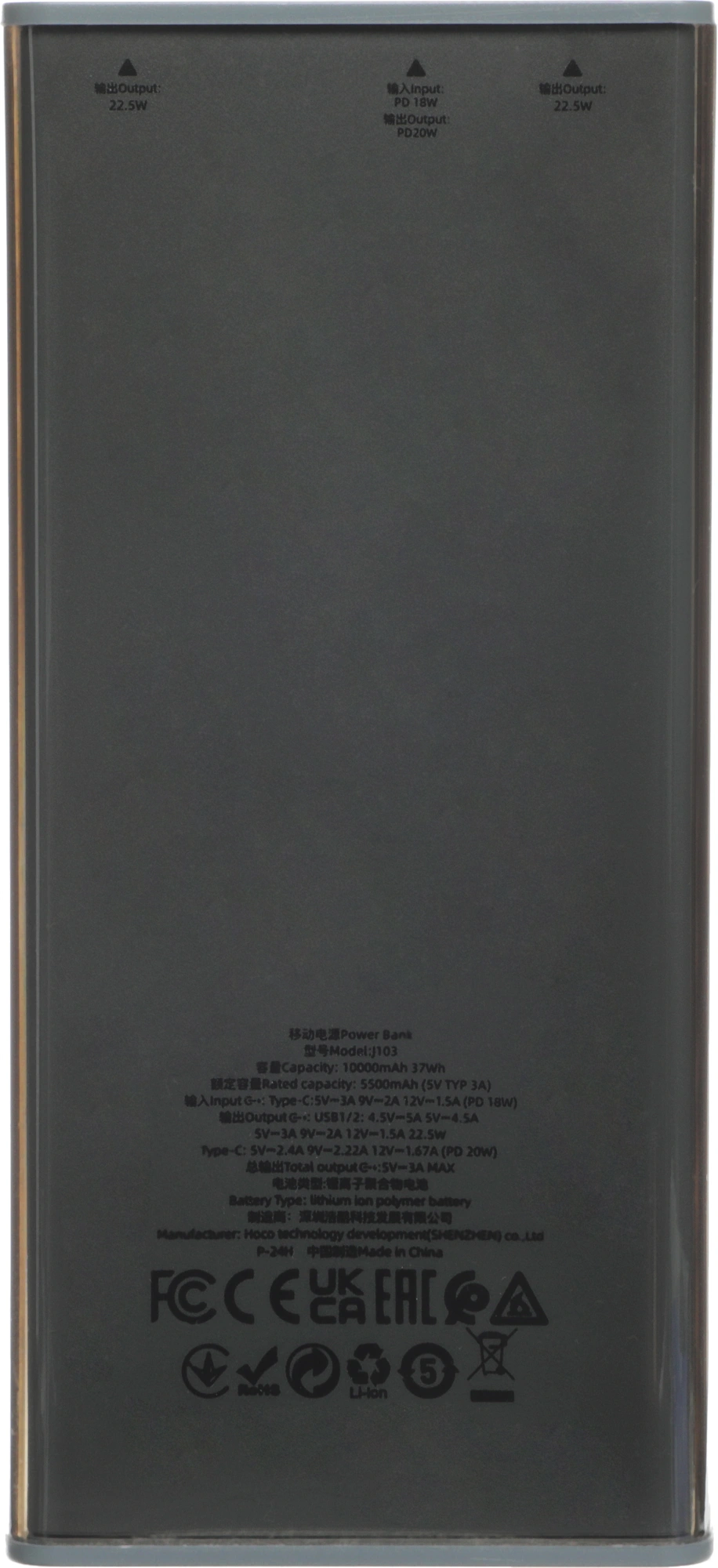 10000mAh QC/PD 22.5W 5A 2xUSB-A/USB-C серый (J103...