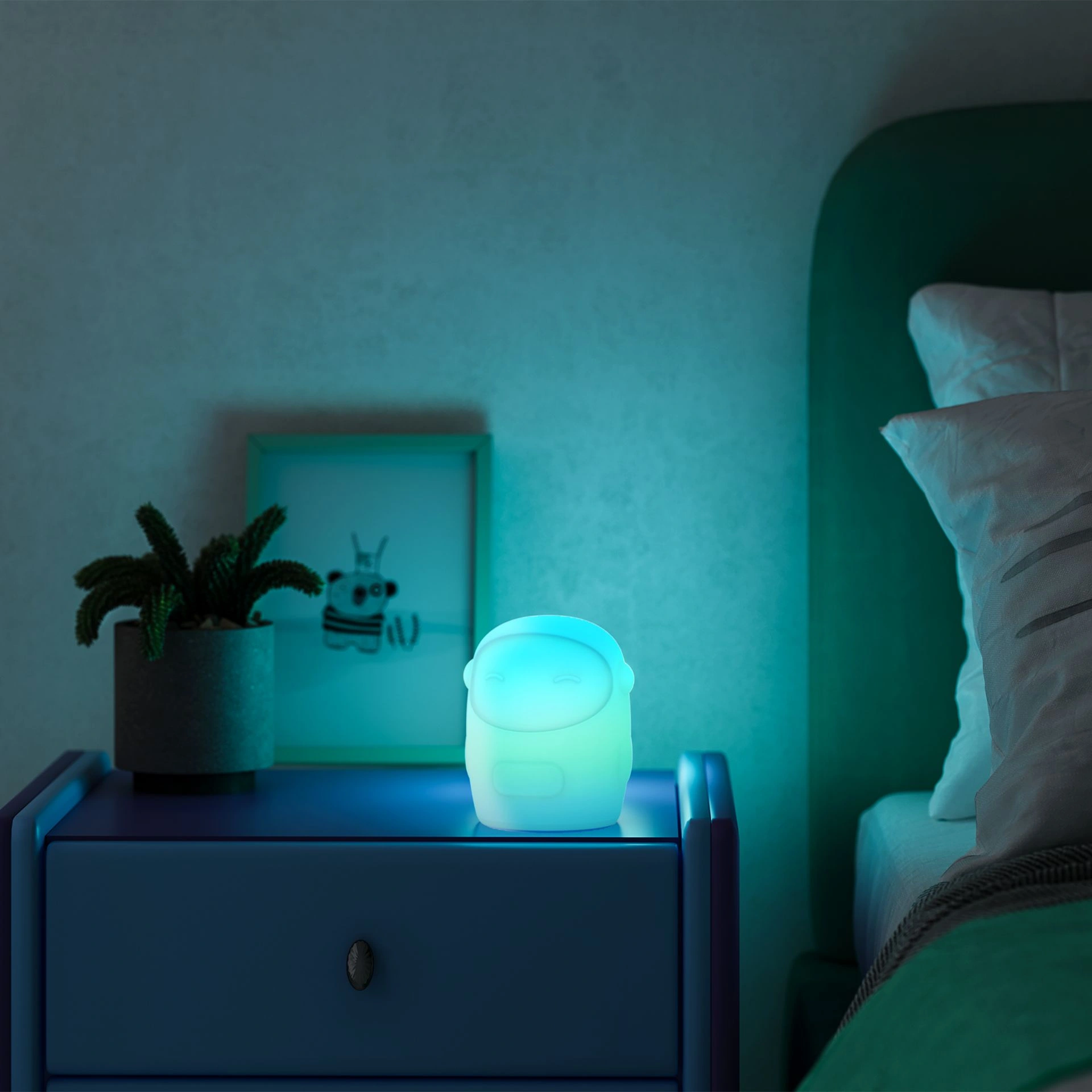 Умный ночник Sber в форме космонавта красиво светится в темноте и стильно выглядит. Ваши дети будут просыпаться в удовольствие. Регулируйте яркость, температуру цвета, выбирайте любой из 16 млн цветов. Удалённо включайте ночник со смартфона и выключайте по таймеру.