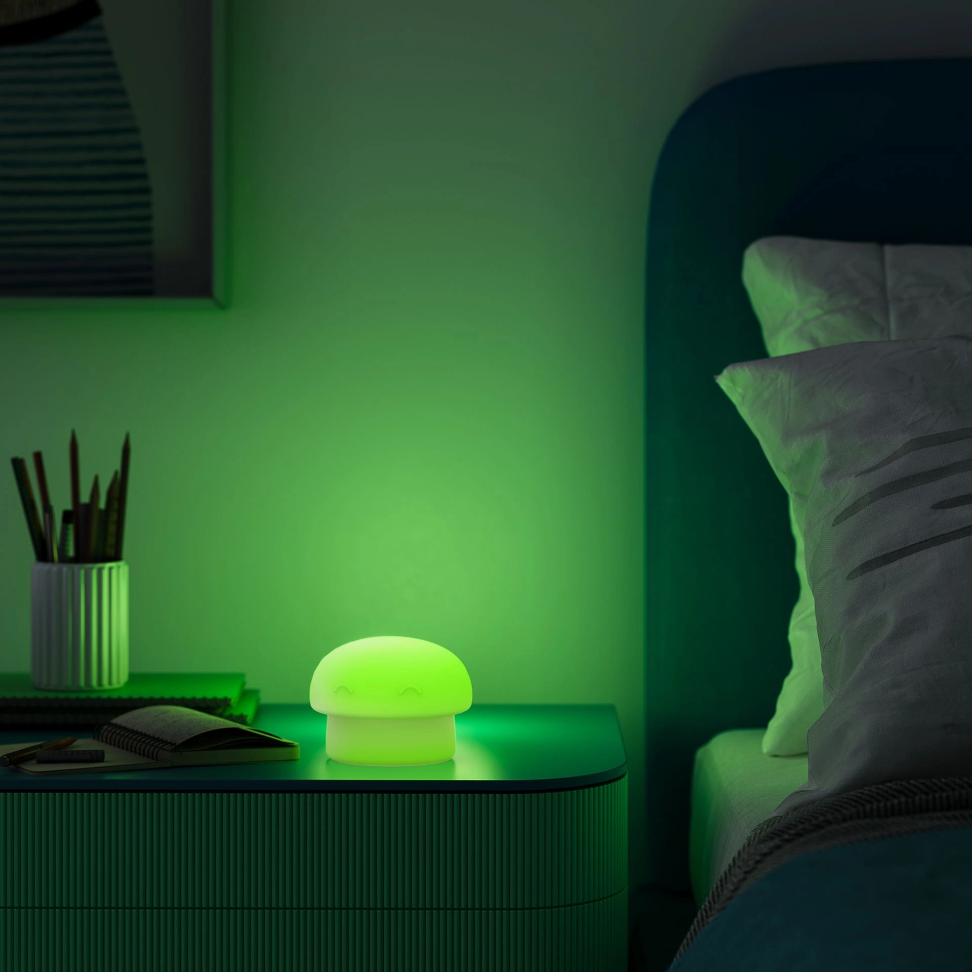 Умный ночник Sber в форме грибочка красиво светится в темноте и стильно выглядит. Ваши дети будут просыпаться в удовольствие. Регулируйте яркость, температуру цвета, выбирайте любой из 16 млн цветов. Удалённо включайте ночник со смартфона и выключайте по таймеру.