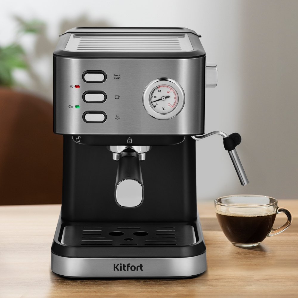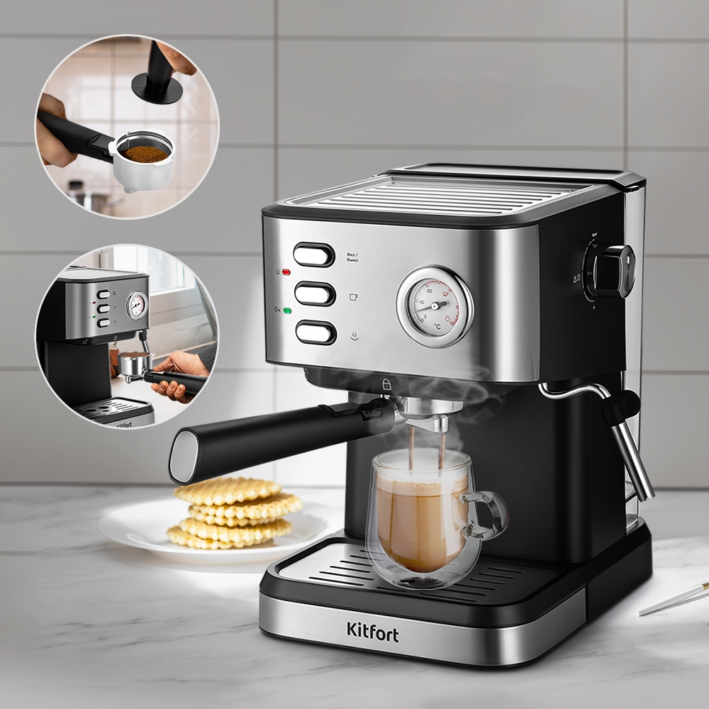 Рожковая кофеварка КТ-7293 поможет приготовить эспрессо, капучино или латте, а также множество других видов кофе на наш вкус. Рожковая кофеварка - отличный выбор для гурманов, желающих ежедневно наслаждаться полным букетом вкусов свежего кофе.