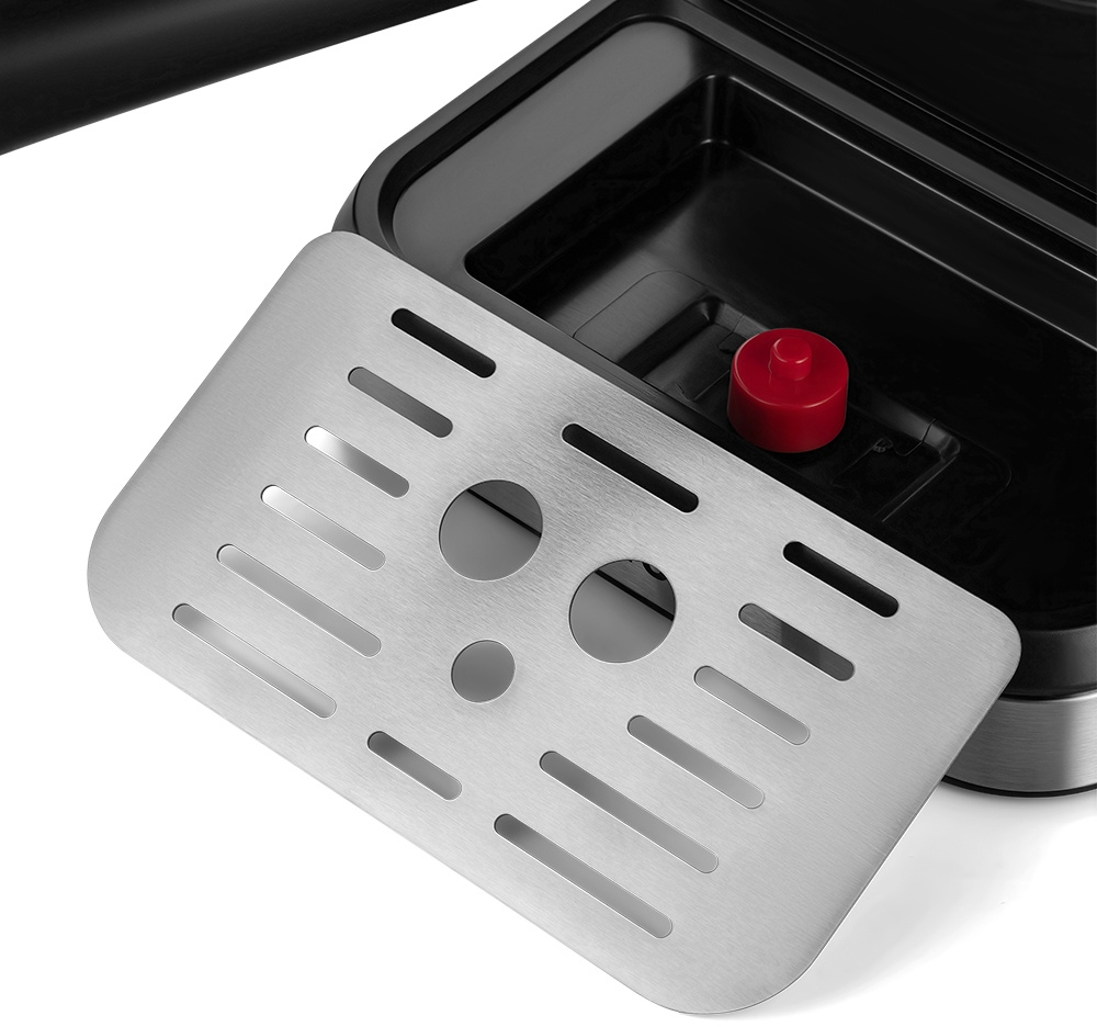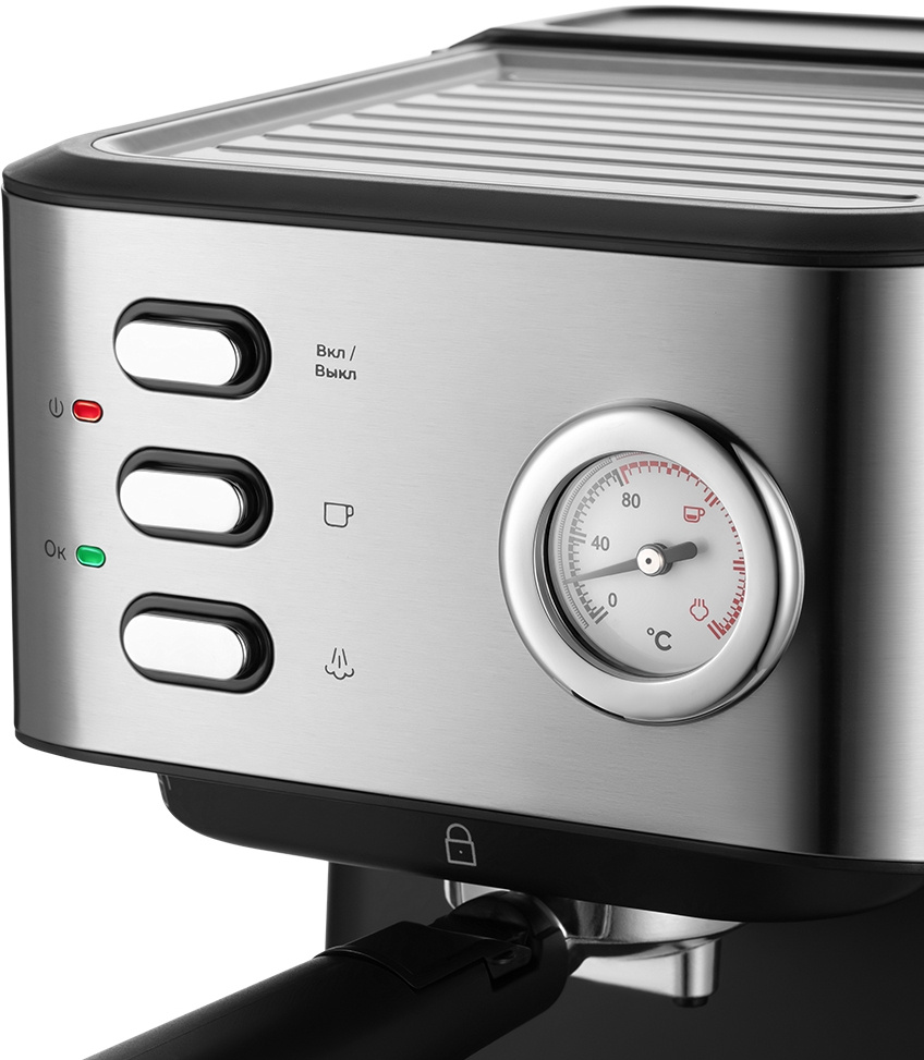капучинатор, манометр, отсек для шнура, панель для подогрева чашек, съемный дренажный отсек для капель, съемный поддон для капель, съемный резервуар для воды, темпер