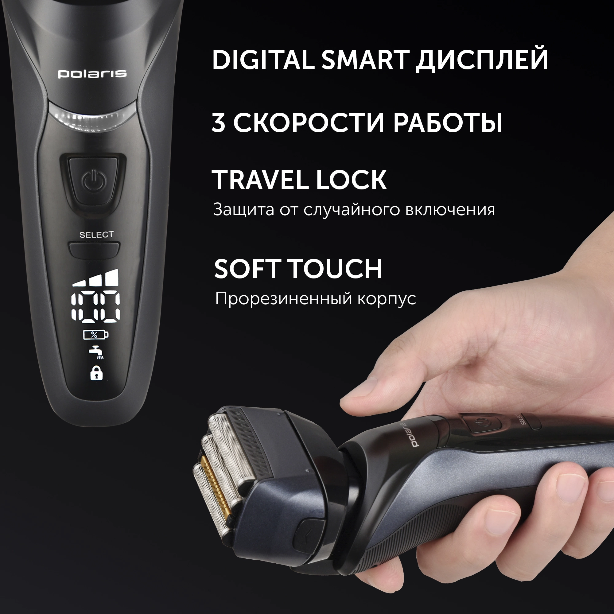 дисплей; влагозащищенный корпус; чистка под струей воды; быстрая зарядка; плавающие головки; ножи из нержавеющей стали