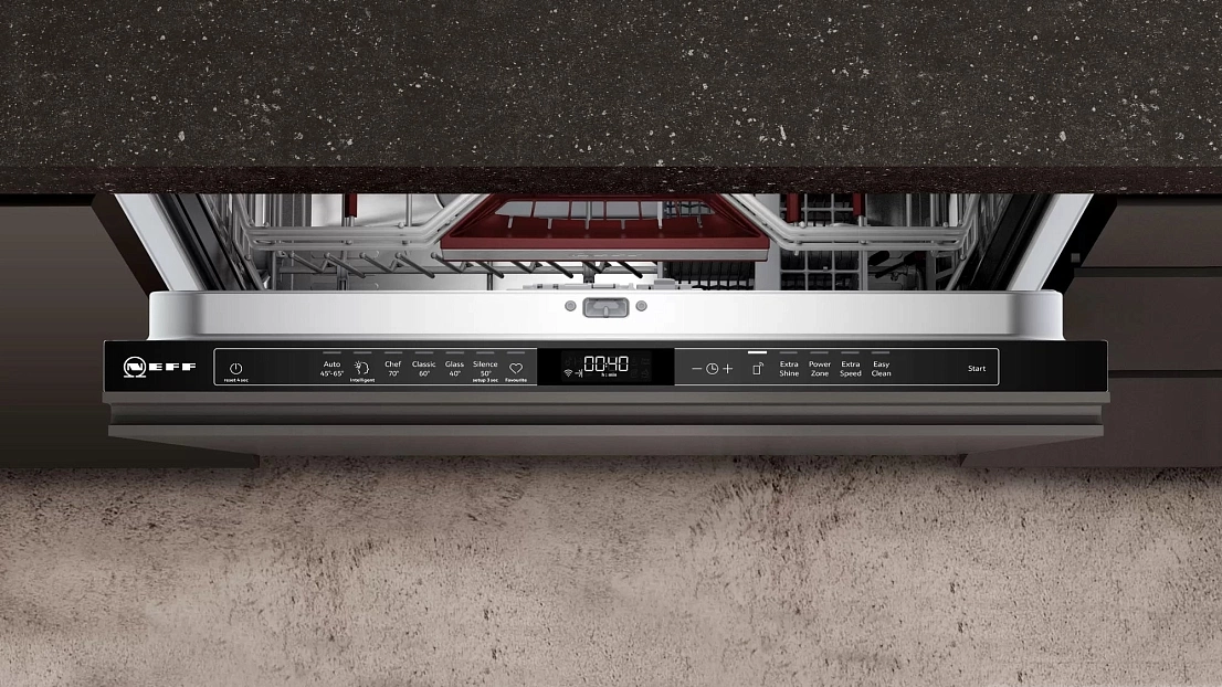 времени до конца программы, звуковой сигнал, луч на полу, наличия ополаскивателя, наличия соли