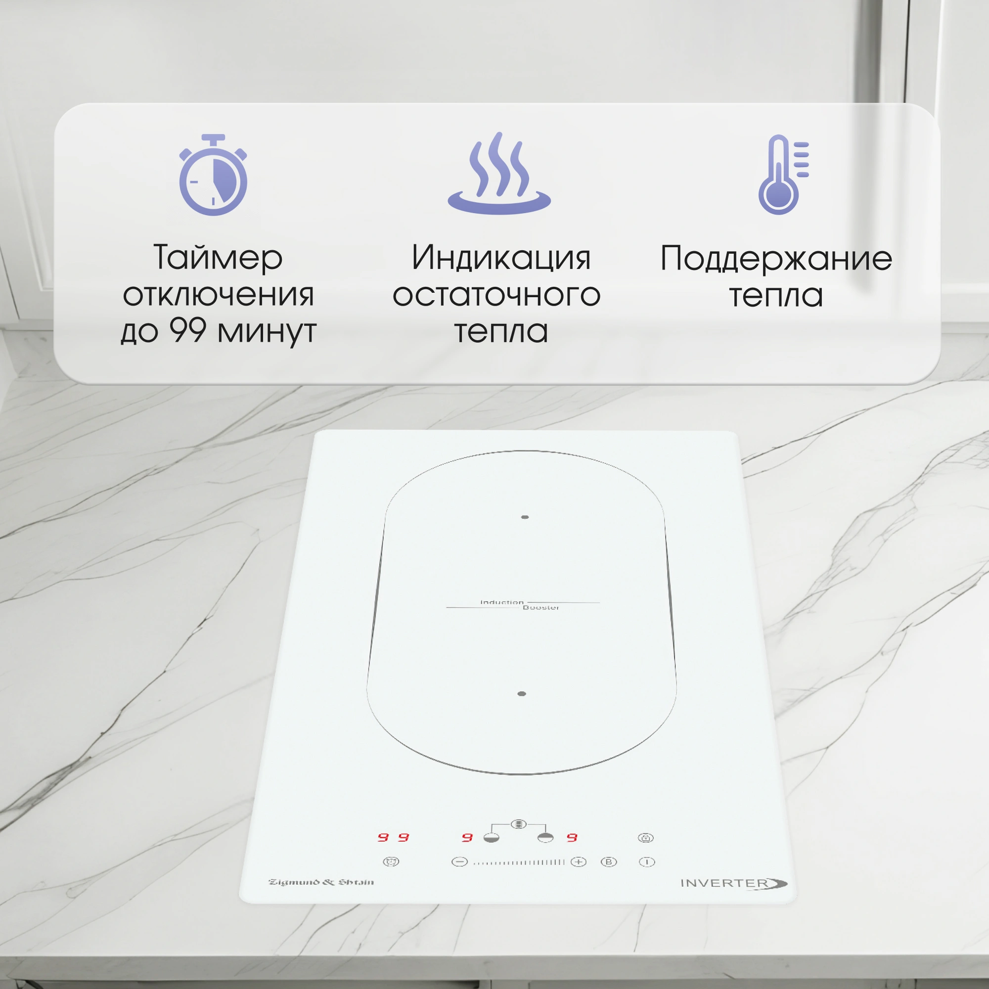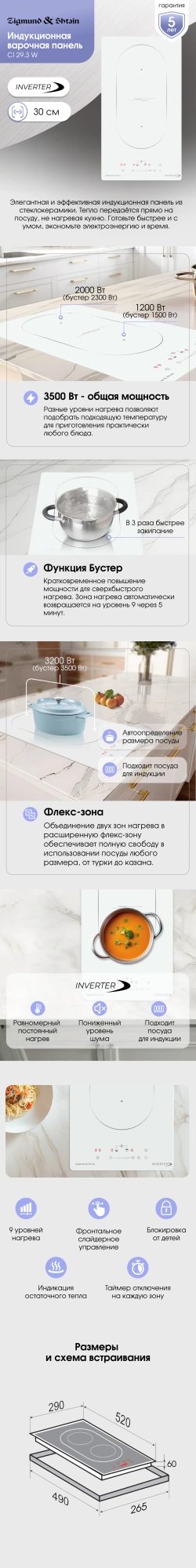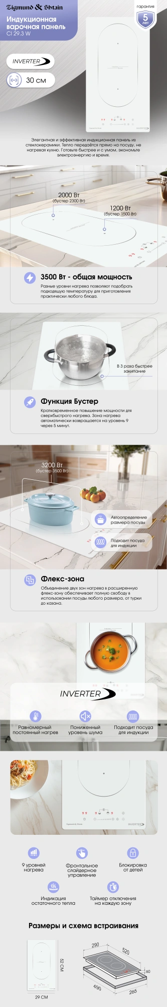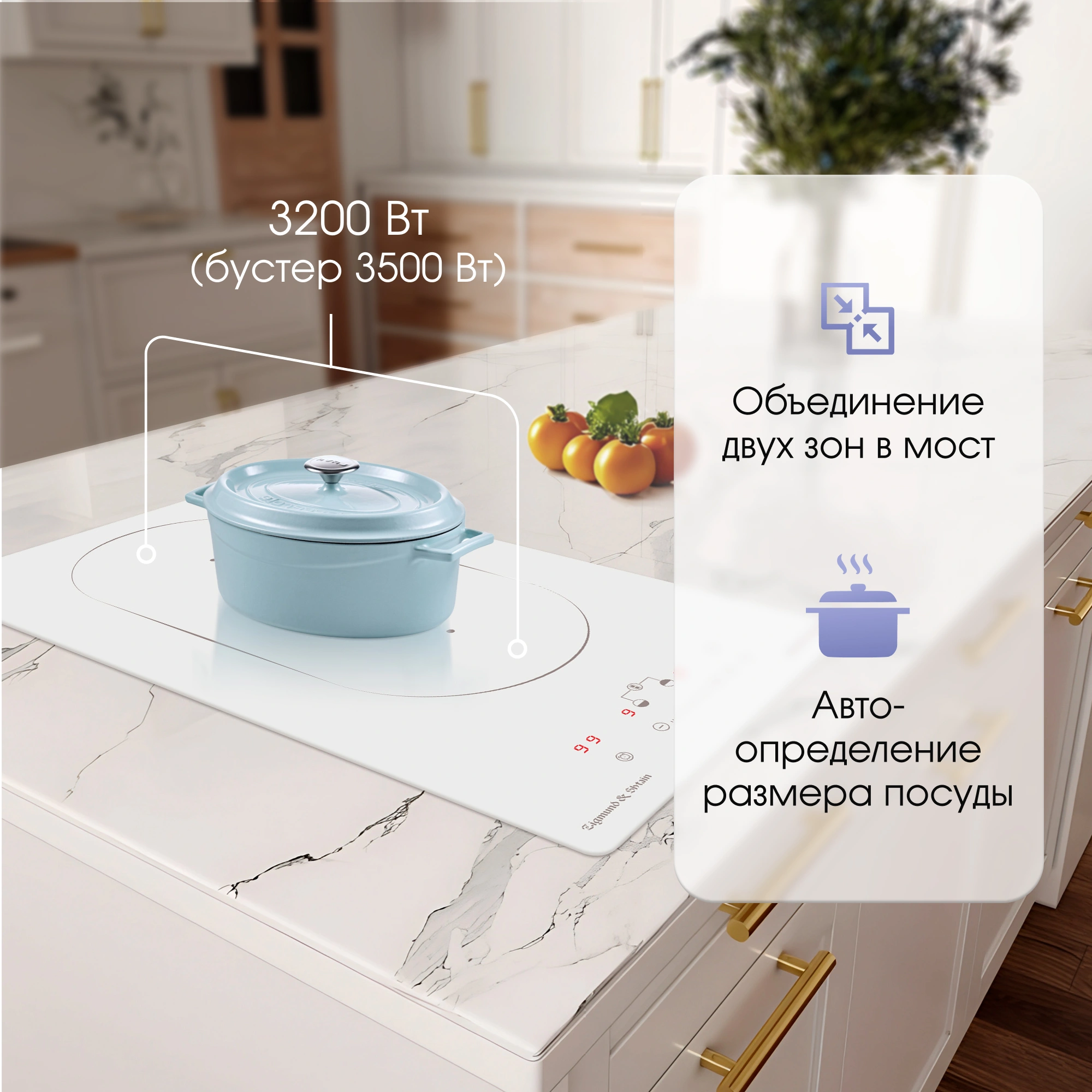 распознавание размера посуды, увеличение мощности нагрева (Booster)