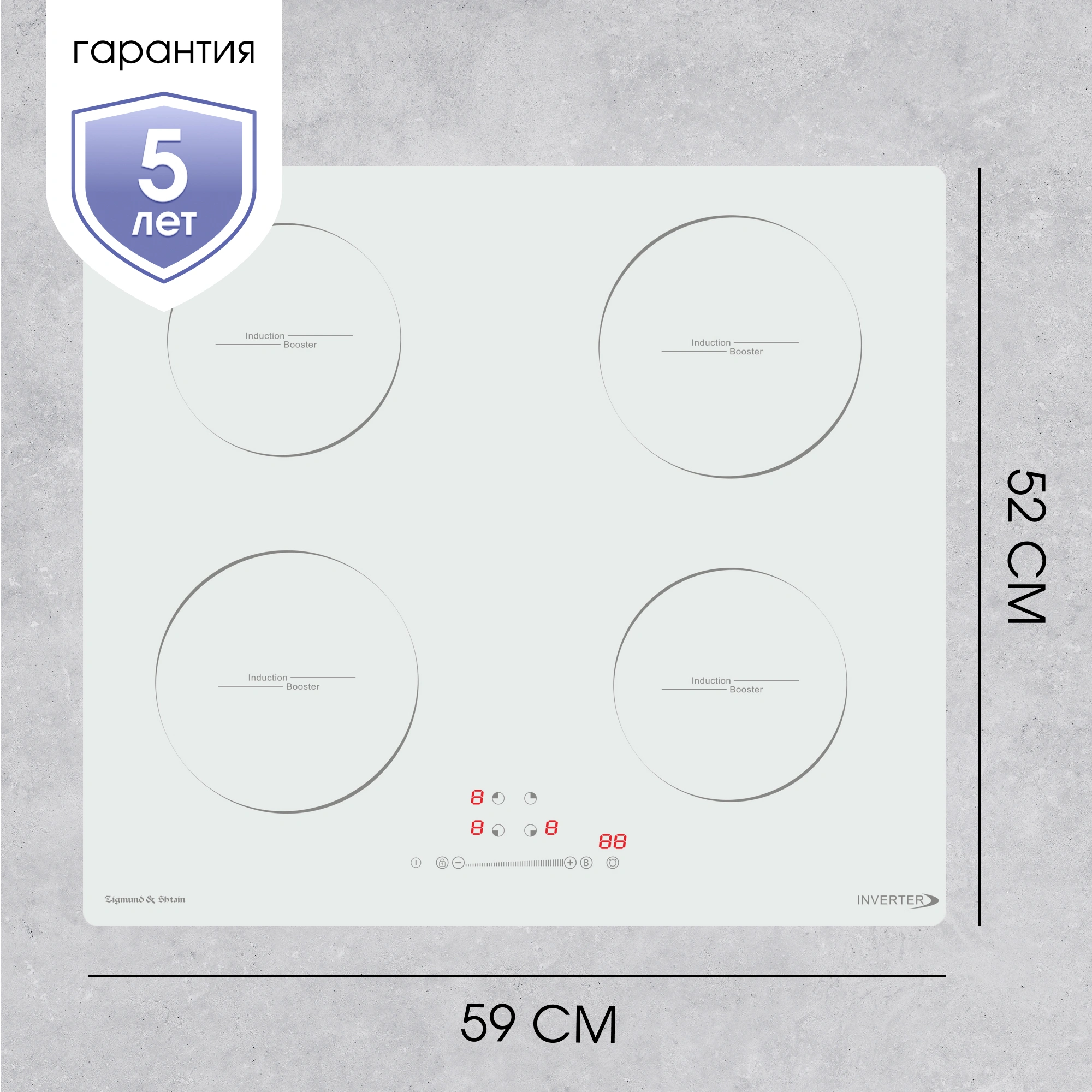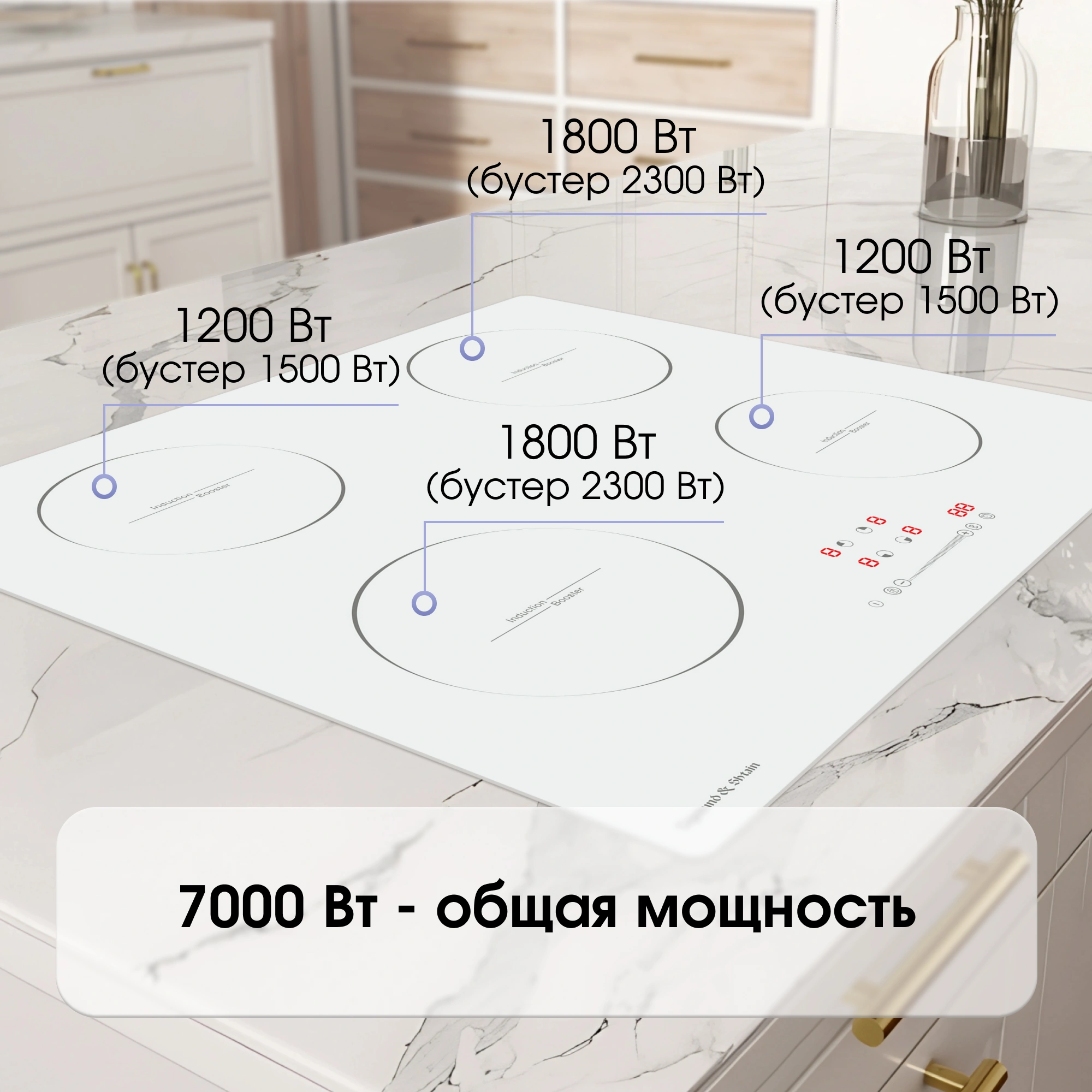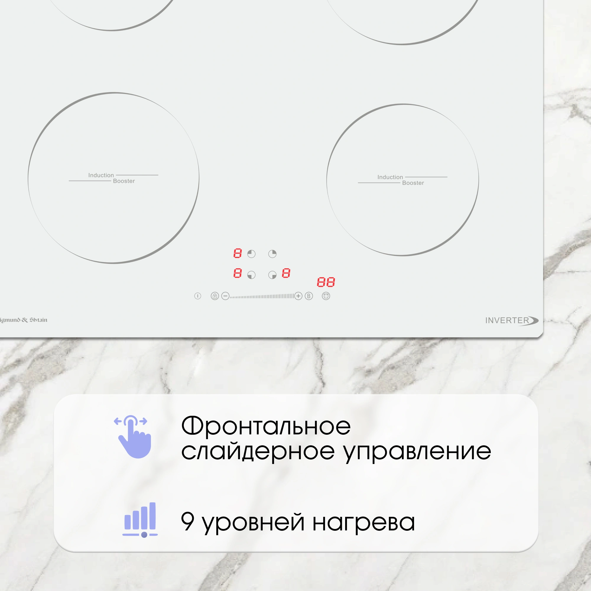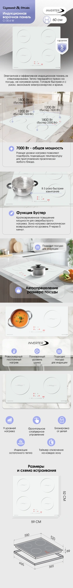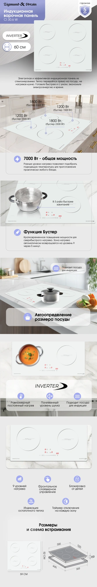распознавание размера посуды, увеличение мощности нагрева (Booster)
