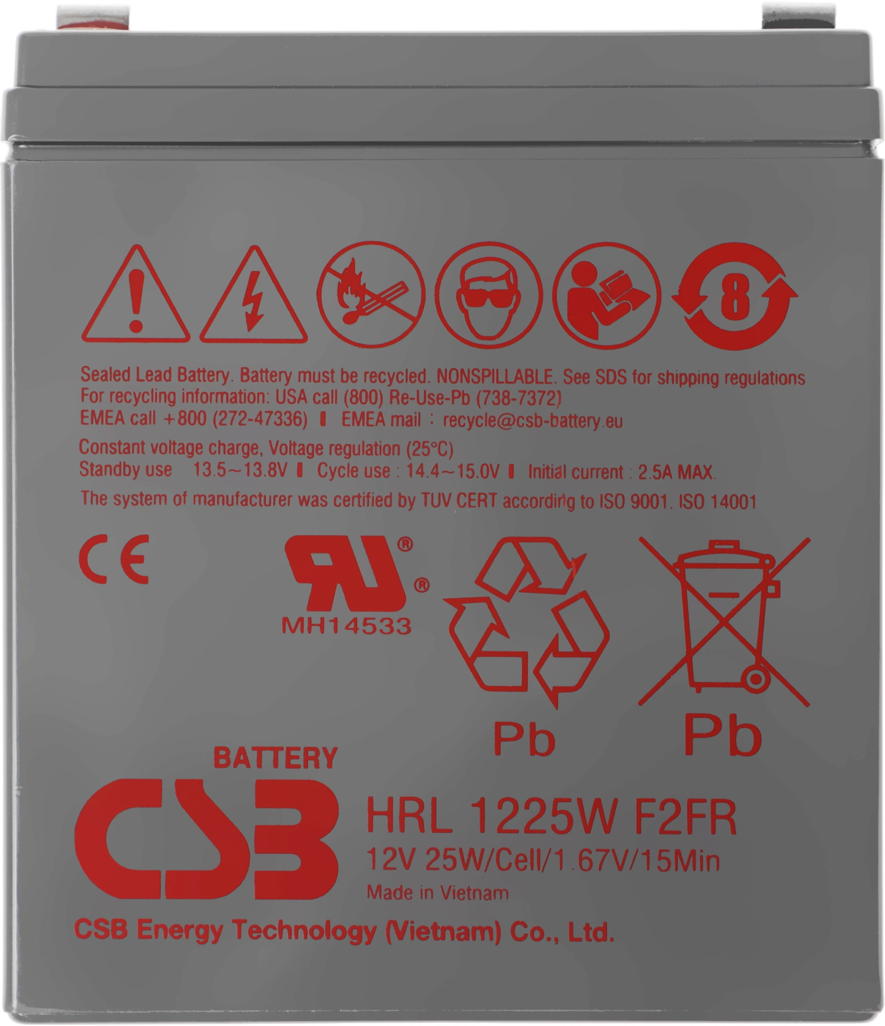 Аккумулятор CSB HRL 1225W F2 FR с высокой энергоемкостью. Особенная кристаллическая решетка электродов позволила увеличить на 20% отдаваемую мощность по сравнению с батареями других серий. Она разработана для эксплуатации в режиме высоких токов разряда при коротком времени разряда.