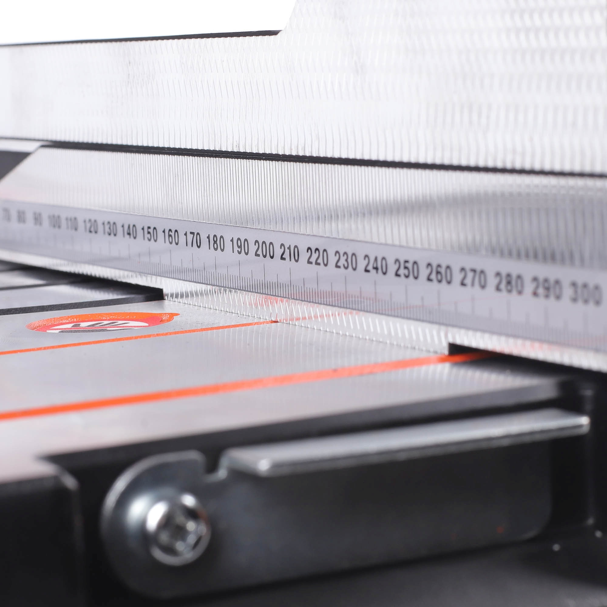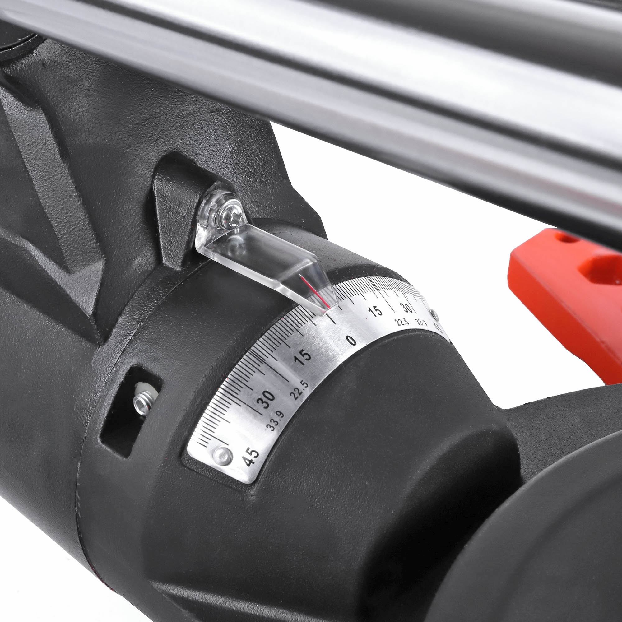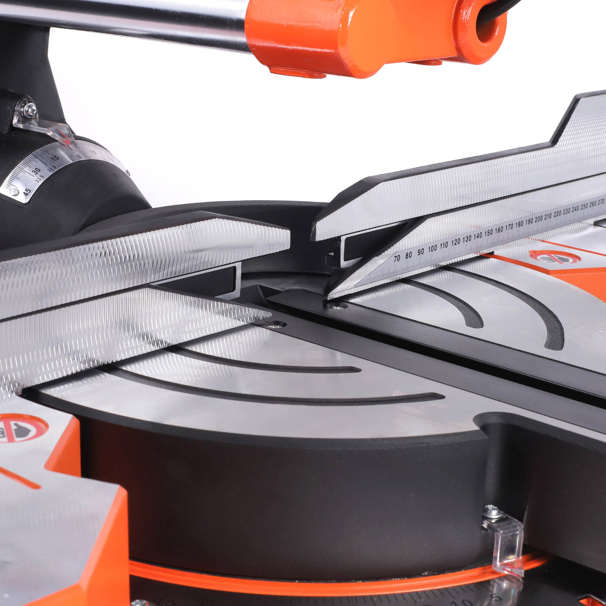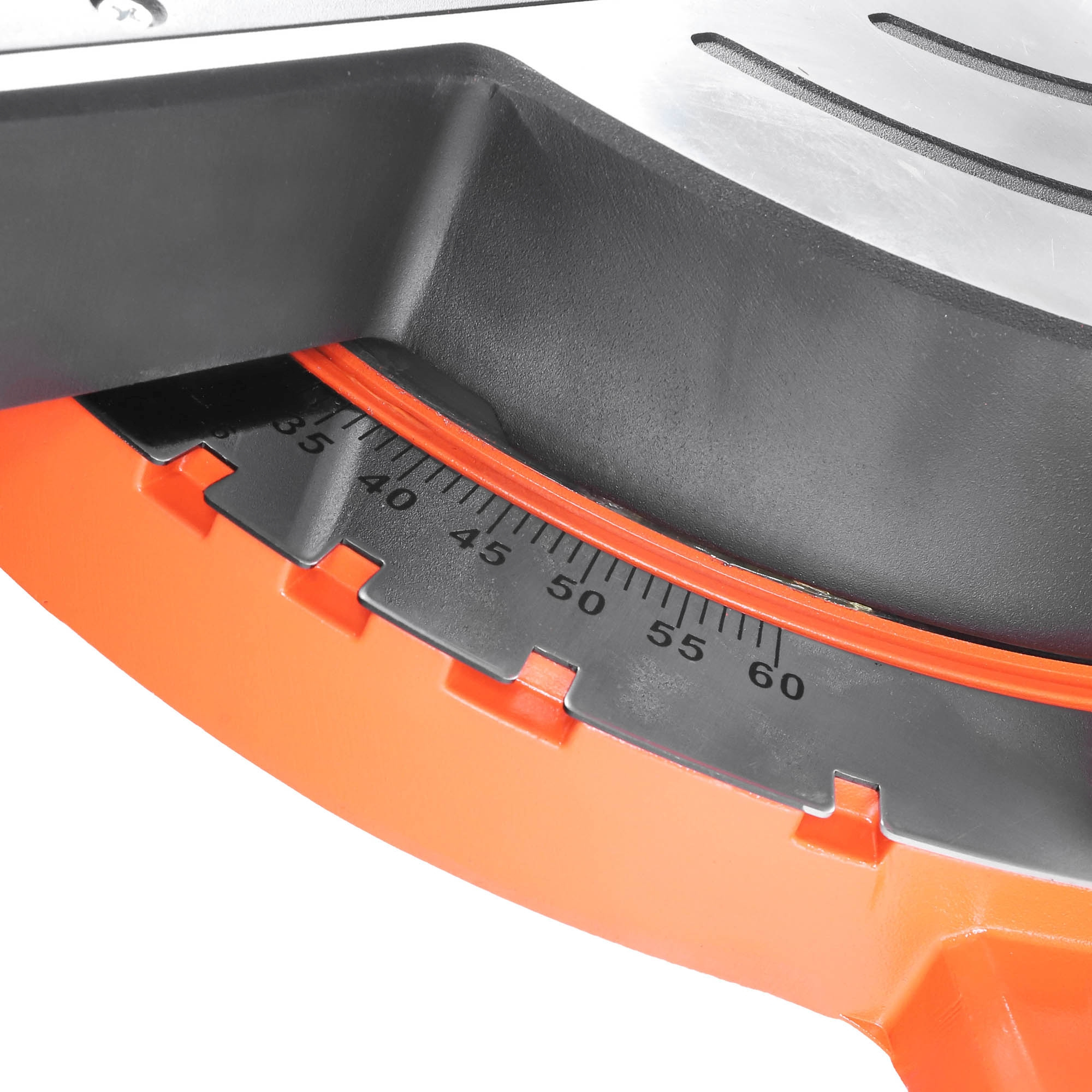 горизонтальное перемещение (протяжка), ограничитель глубины реза, плавный пуск, регулировка глубины реза