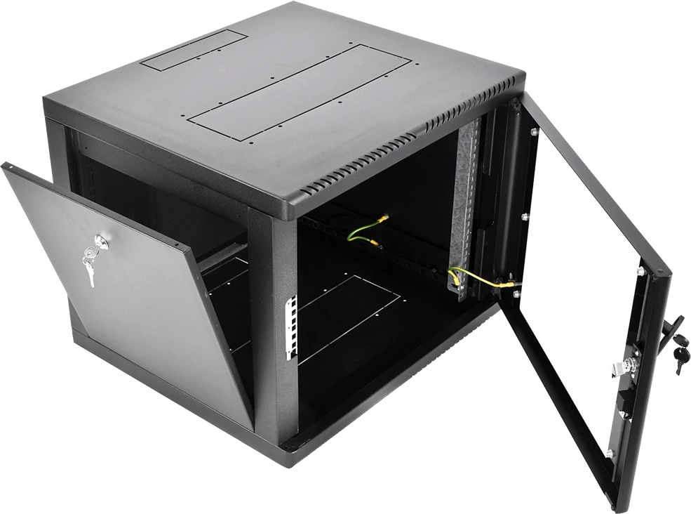 Шкаф коммутационный ЦМО (ШРН-М-9.500-9005) настенный 9U 600x520мм пер.дв.стекл 130кг черный 456мм 19.35кг 180град. 480мм IP20 сталь