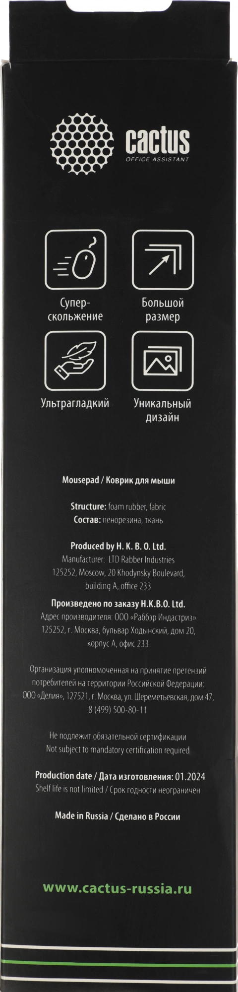 Коврик для мыши Cactus серии Professional относится к ценовому сегменту "премиум". Имеет подарочную упаковку. Отвечает основным требованиям потребления. Внешний вид и/или характеристики товара могут быть изменены производителем в соответствии с производственным процессом.