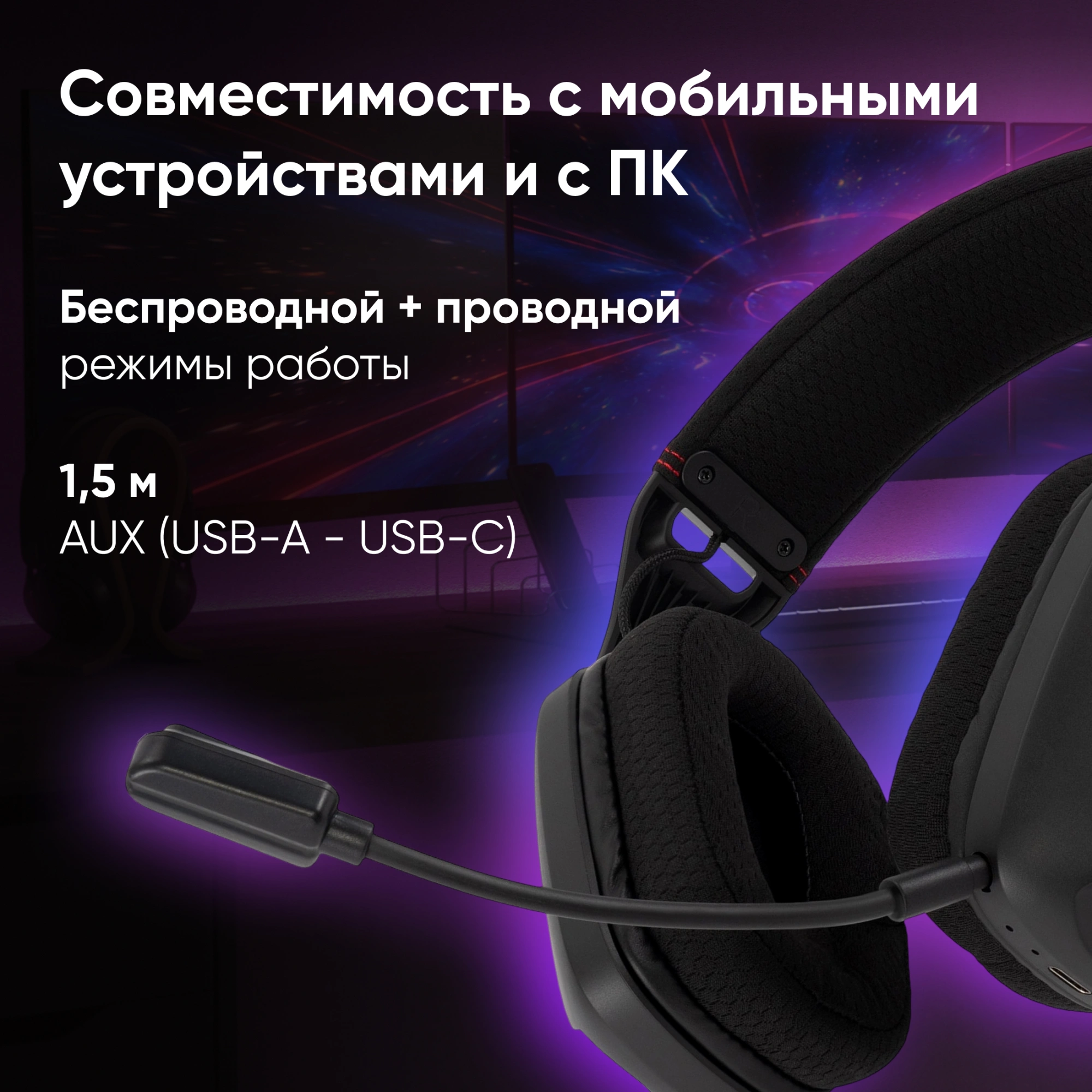 Облегченная гарнитура с поддержкой беспроводных (BT + 2,4G) и проводного режима, съемным микрофоном, ресивер, зарядный провод в комплекте