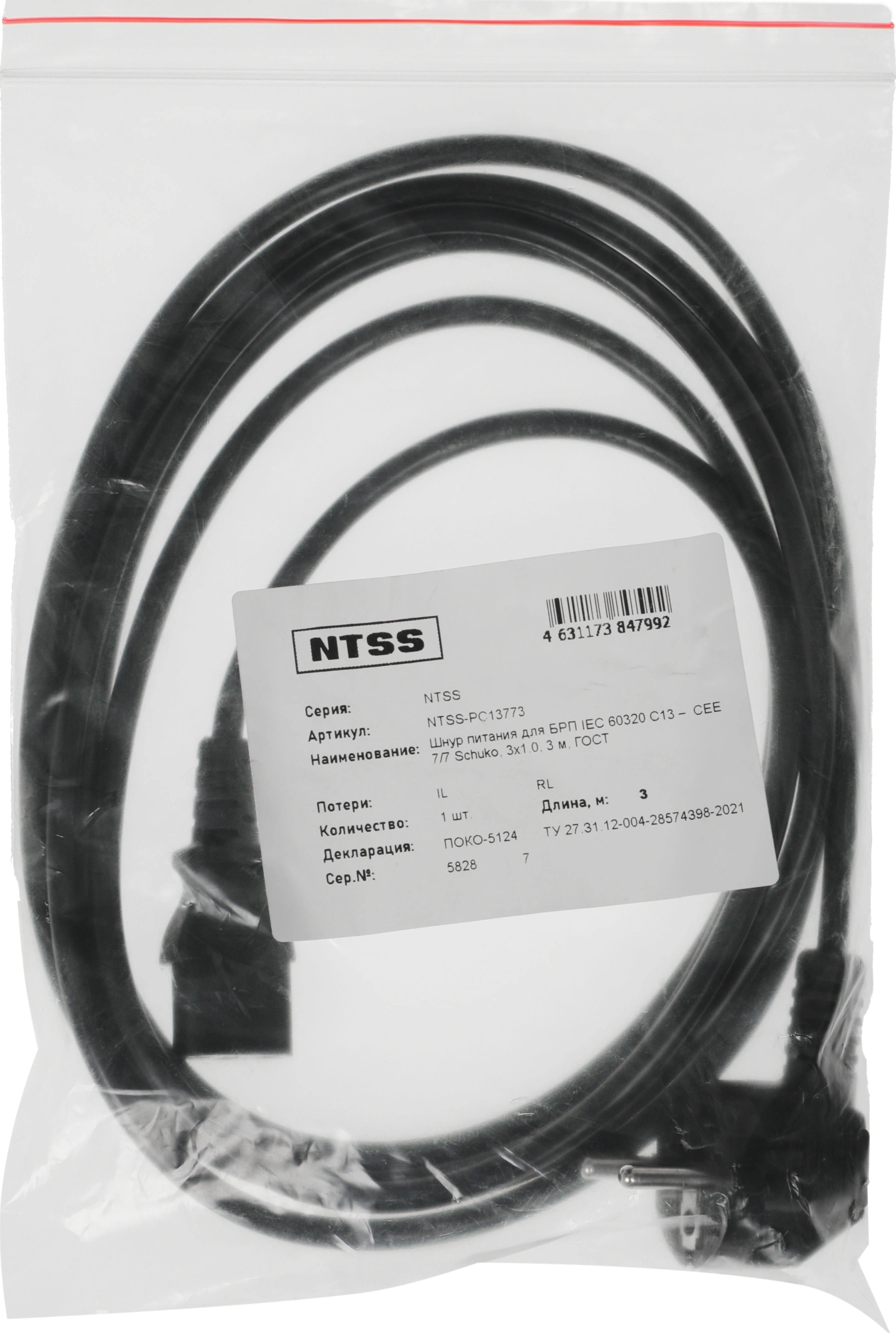 C13-Schuko проводник.:3x1мм2 3м 220В 10А черный