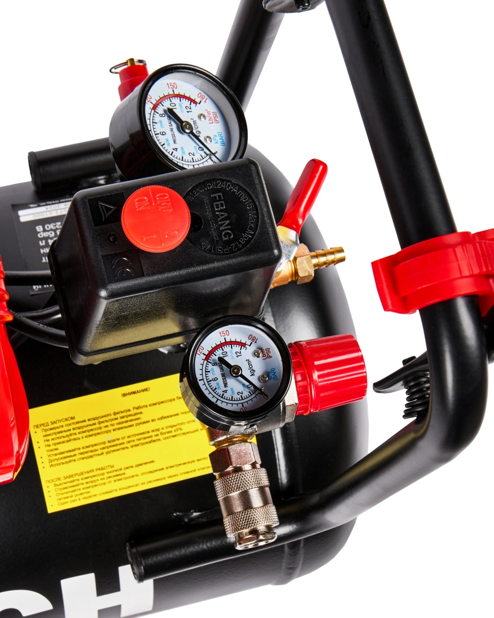 Компрессор, фильтр воздушный - 2 шт., колесо с крепежом - 2 шт., опора резиновая с крепежом, ручка транспортировочная, паспорт.