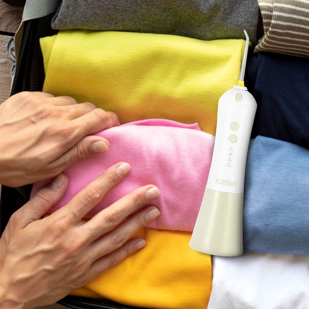Портативный ирригатор Kitfort КТ-2958 — это простой и эффективный прибор для чистки полости рта. Тонкая и сильная струя воды не только вымывает остатки еды, налёт из межзубного пространства и пародонтальных карманов, но и массажирует дёсны.