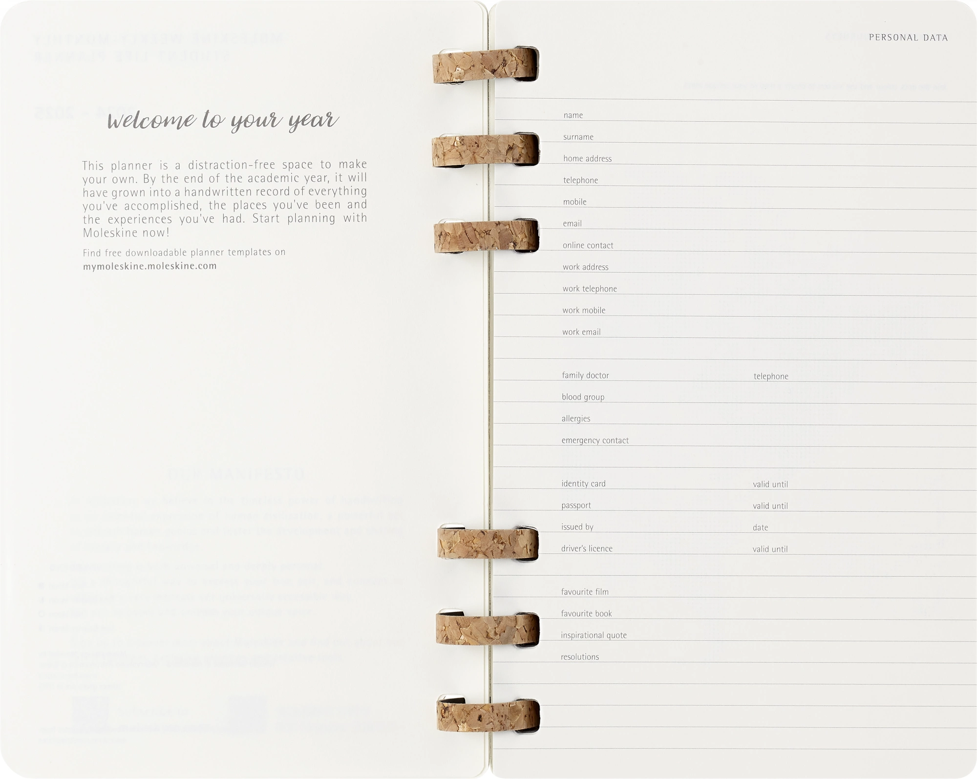 Переплет из корковой массы на спирали: особый состав корковой массы переплета придает этому органайзеру для студентов прочность, гибкость, теплоту и оригинальность.