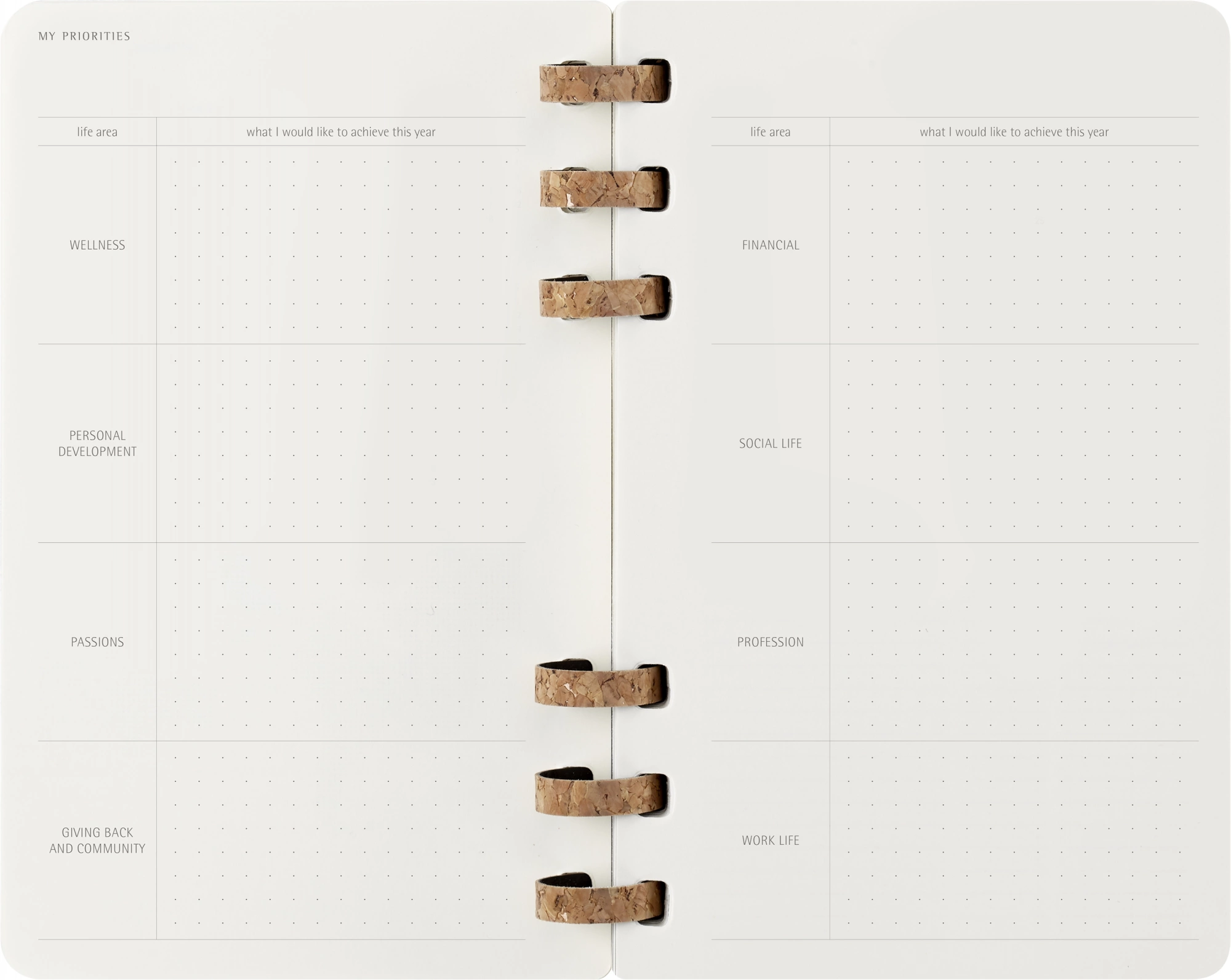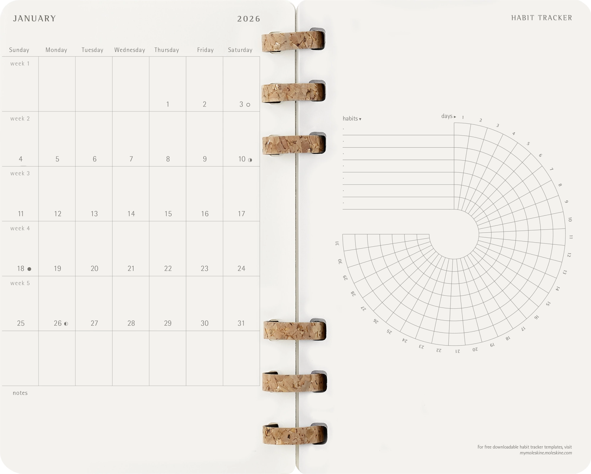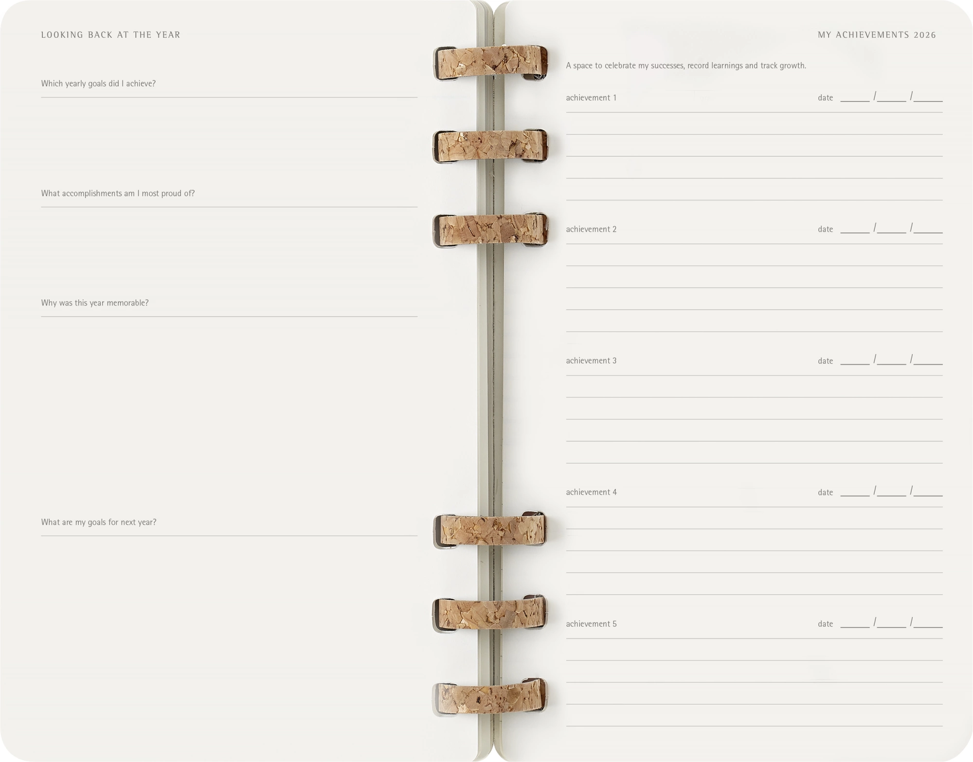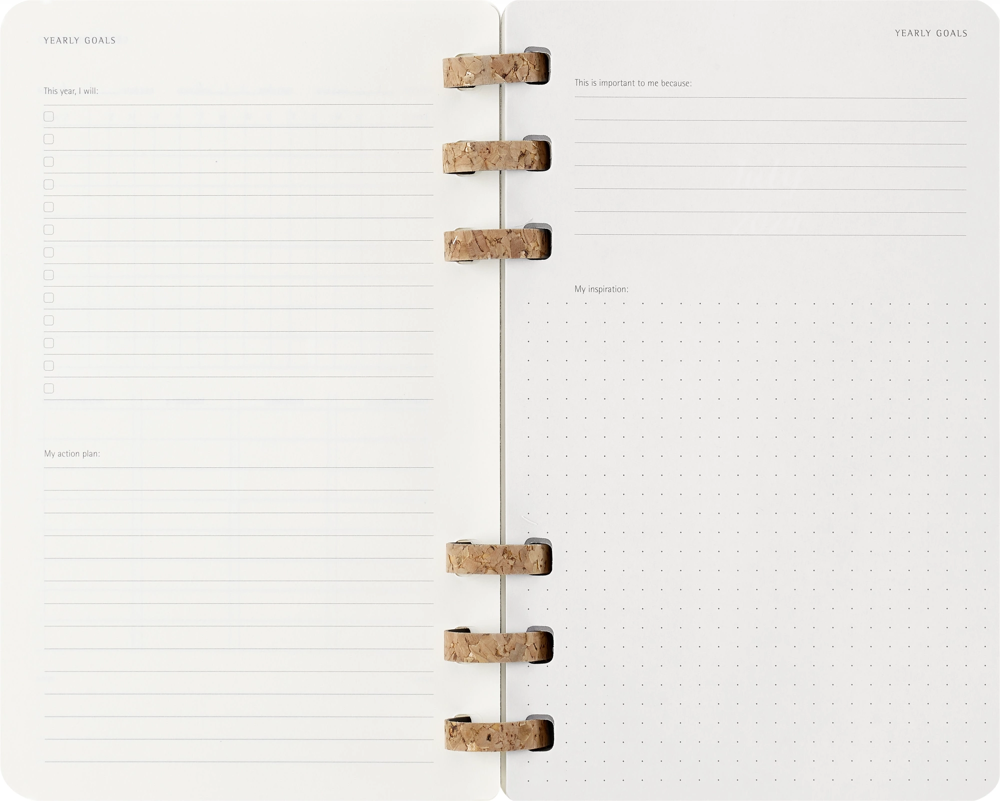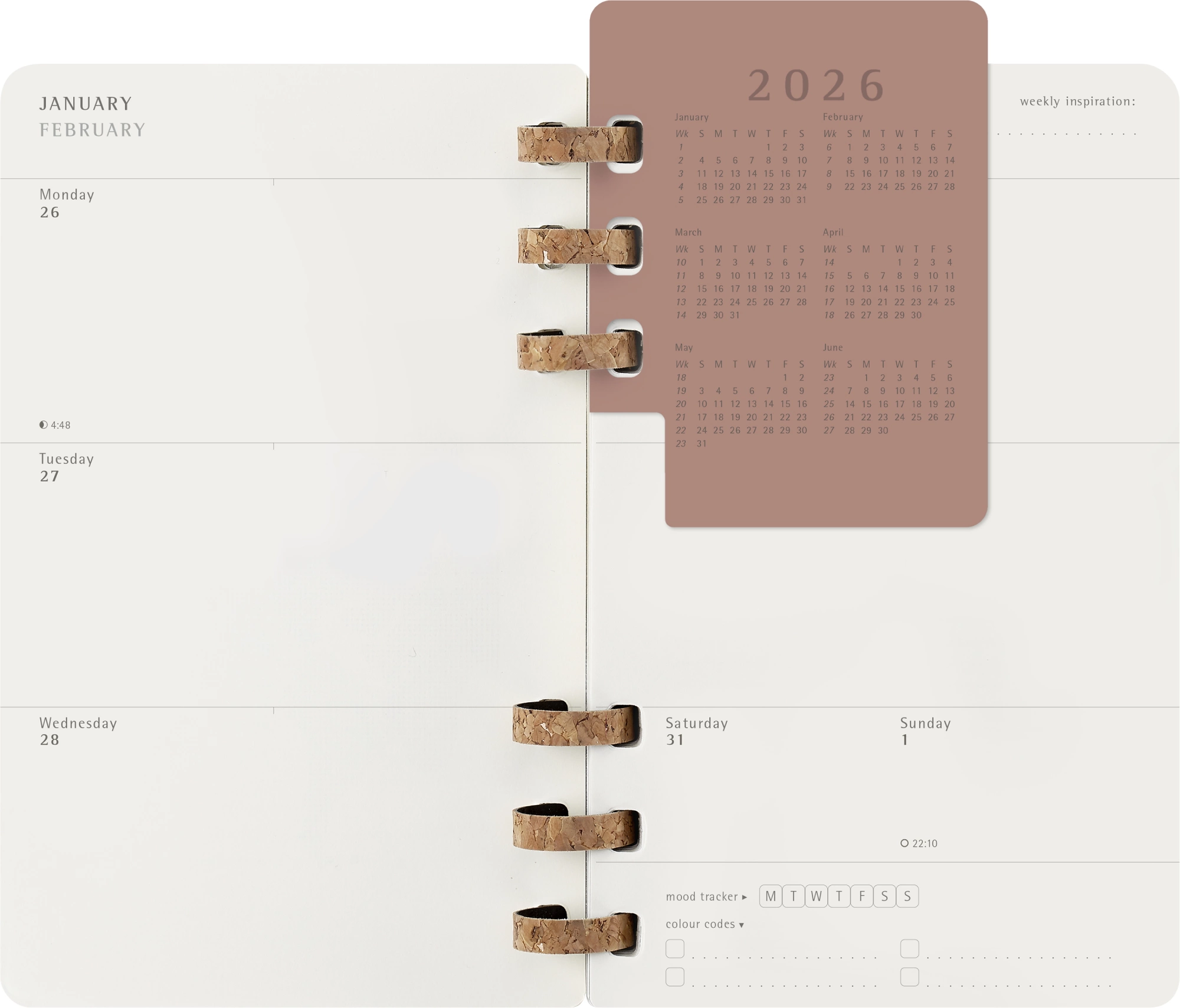 Этот органайзер станет верным ежедневным спутником для всех, кто ценит не только организацию, но и творчество и хорошее самочувствие. Каждая часть этого ежедневника от фактурных корковых переплетов на спирали до структурированных страниц, на которых предусмотрено место как для личных целей, так и для профессиональных планов, призвана восхищать и вдохновлять.