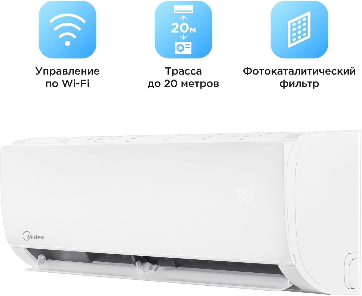 дисплей, память настроек, память положения жалюзи, регулировка силы воздушного потока, таймер, управление с мобильного телефона