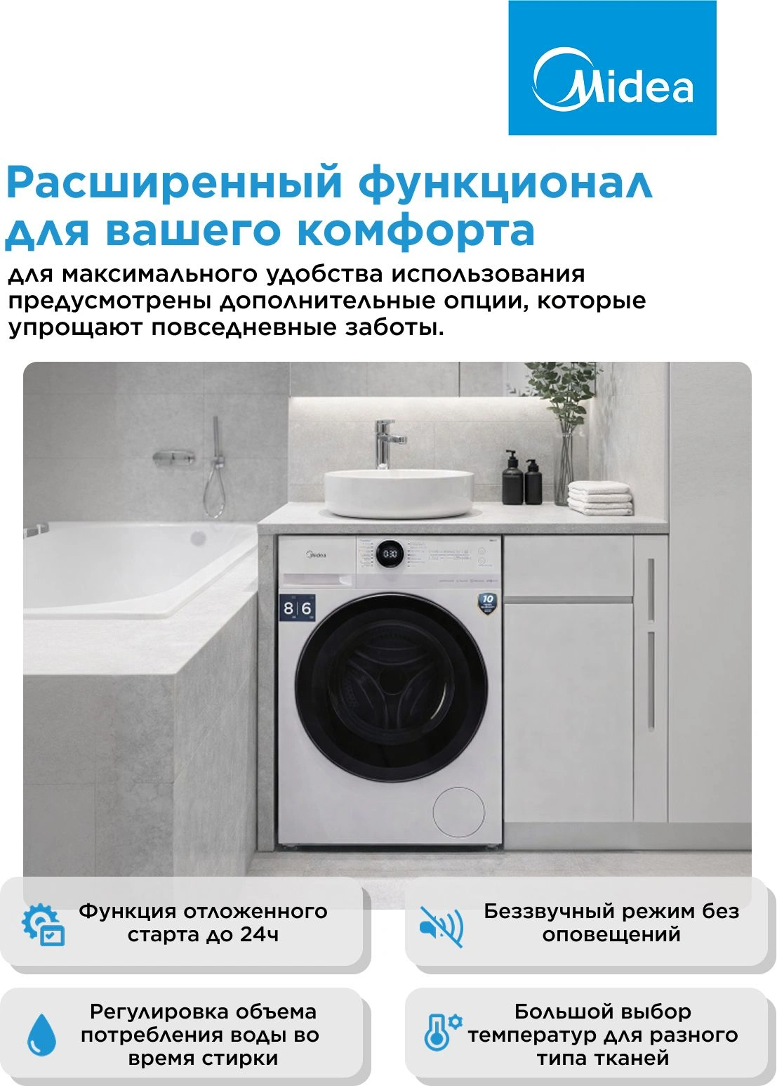 блокировка от случайного нажатия, дисплей, защита от детей, защита от скачков напряжения, таймер отсрочки запуска, управление со смартфона
