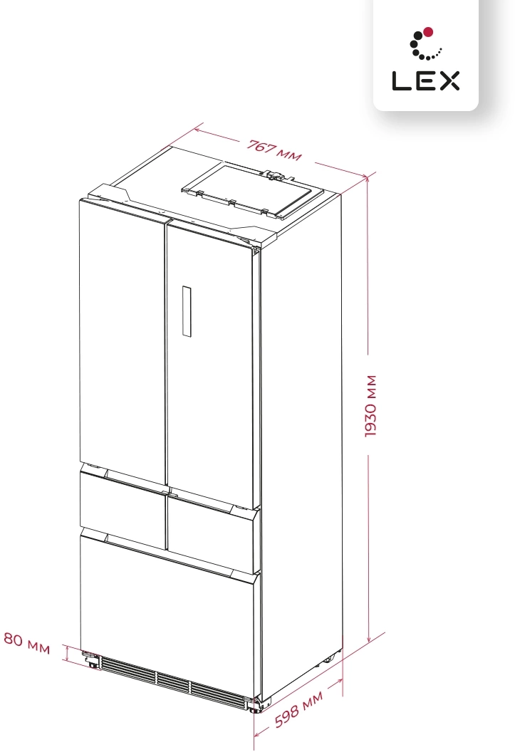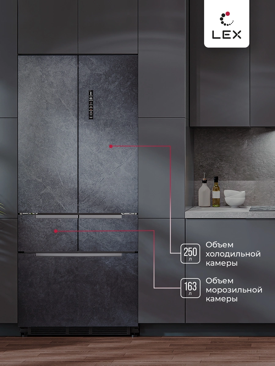 визуальная индикация отключения электропитания, звуковой сигнал незакрытой двери, температуры
