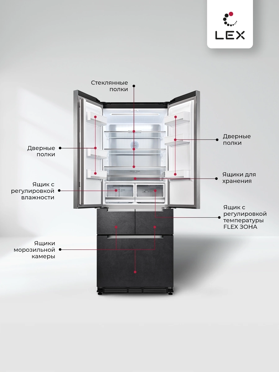 Количество контуров охлаждения 3 (регулируются отдельно), зоны с регулировкой температуры и влажности