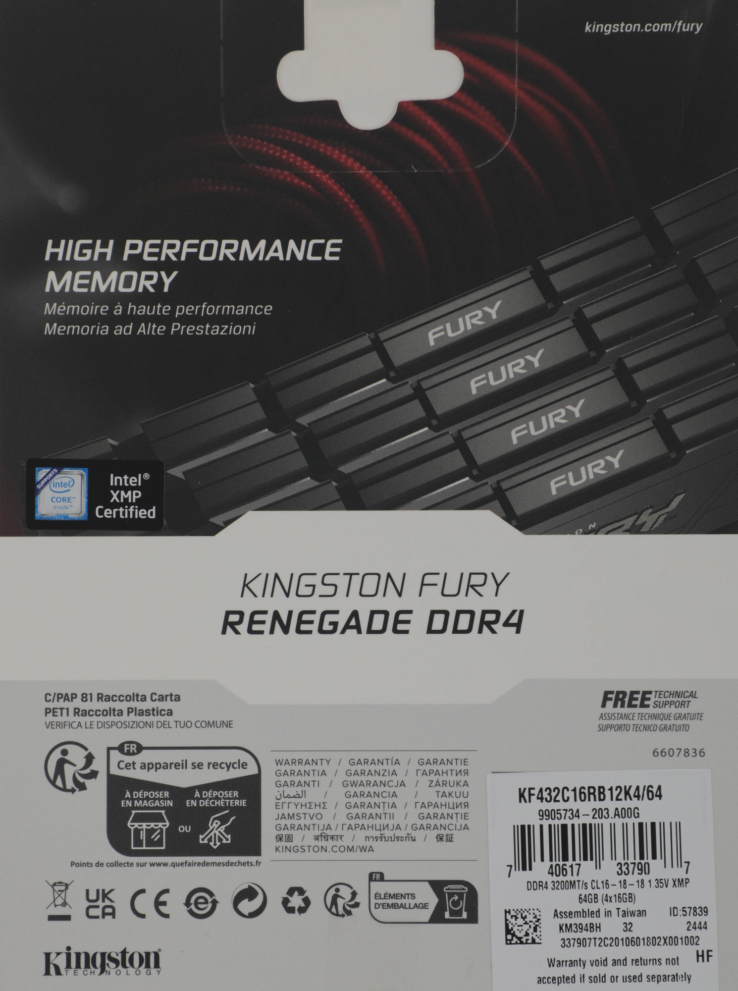 Память DDR4 4x16GB 3200MHz Kingston KF432C16RB12K4/64
