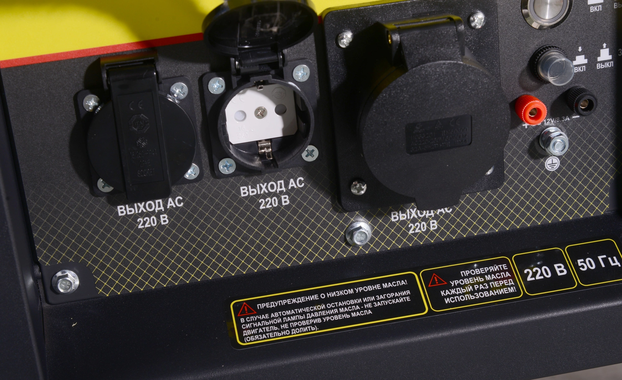 Щёточный генератор. Двигатель одноцилиндровый с воздушным охлаждением. Есть предподготовка для подключения АВР.