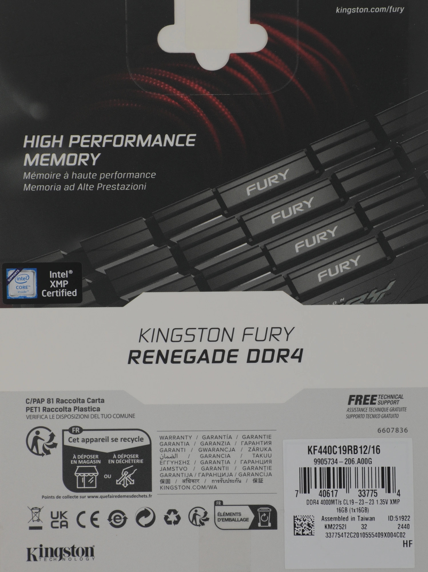 Память DDR4 16GB 4000MHz Kingston KF440C19RB12/16