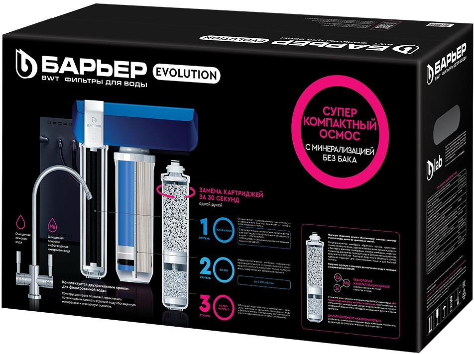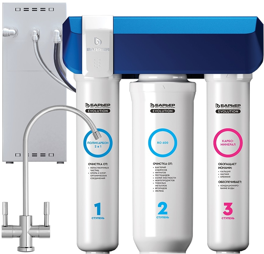 1 ступень: Evolution Поликарбон 2 в 1.2 ступень: Evolution RO 600. 3 ступень: Evolution Карбоминерал