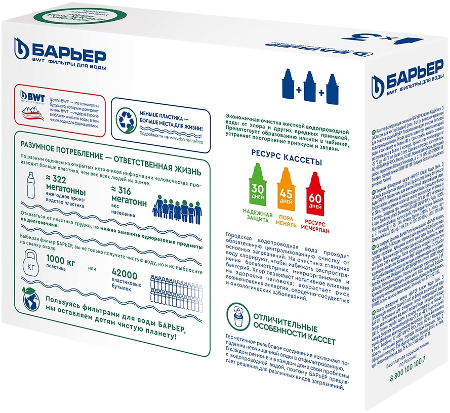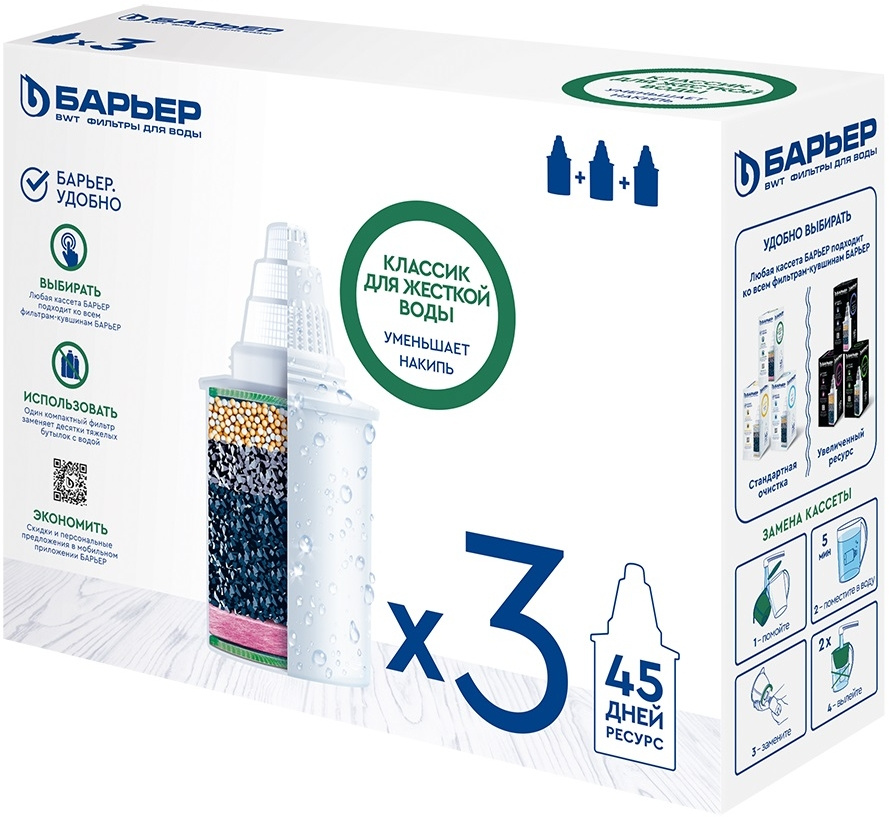 Экономичная очистка водопроводной воды и легкое умягчение. Удаляет хлор, тяжелые металлы, снижает образование накипи. Помогает справиться с небольшим содержанием железа в воде. Ресурс зависит от качества исходной воды, но составляет не более 200 литров.