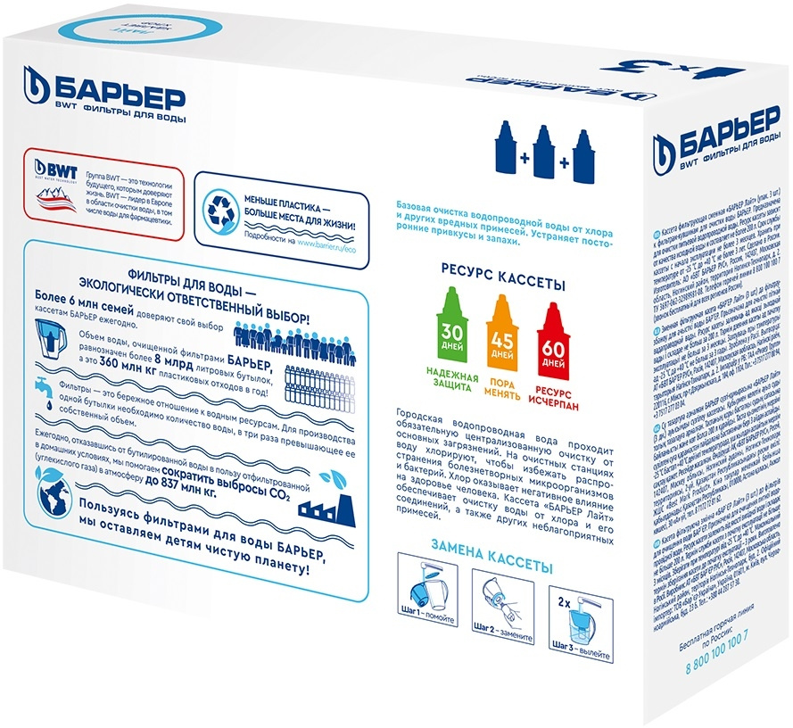 Экономичная очистка водопроводной воды от хлора, тяжелых металлов, железа и других вредных примесей. Удаляет посторонние привкусы и запахи. Ресурс зависит от качества исходной воды, но составляет не более 200 литров. Идеально подходит для городской воды с повышенным содержанием хлора.