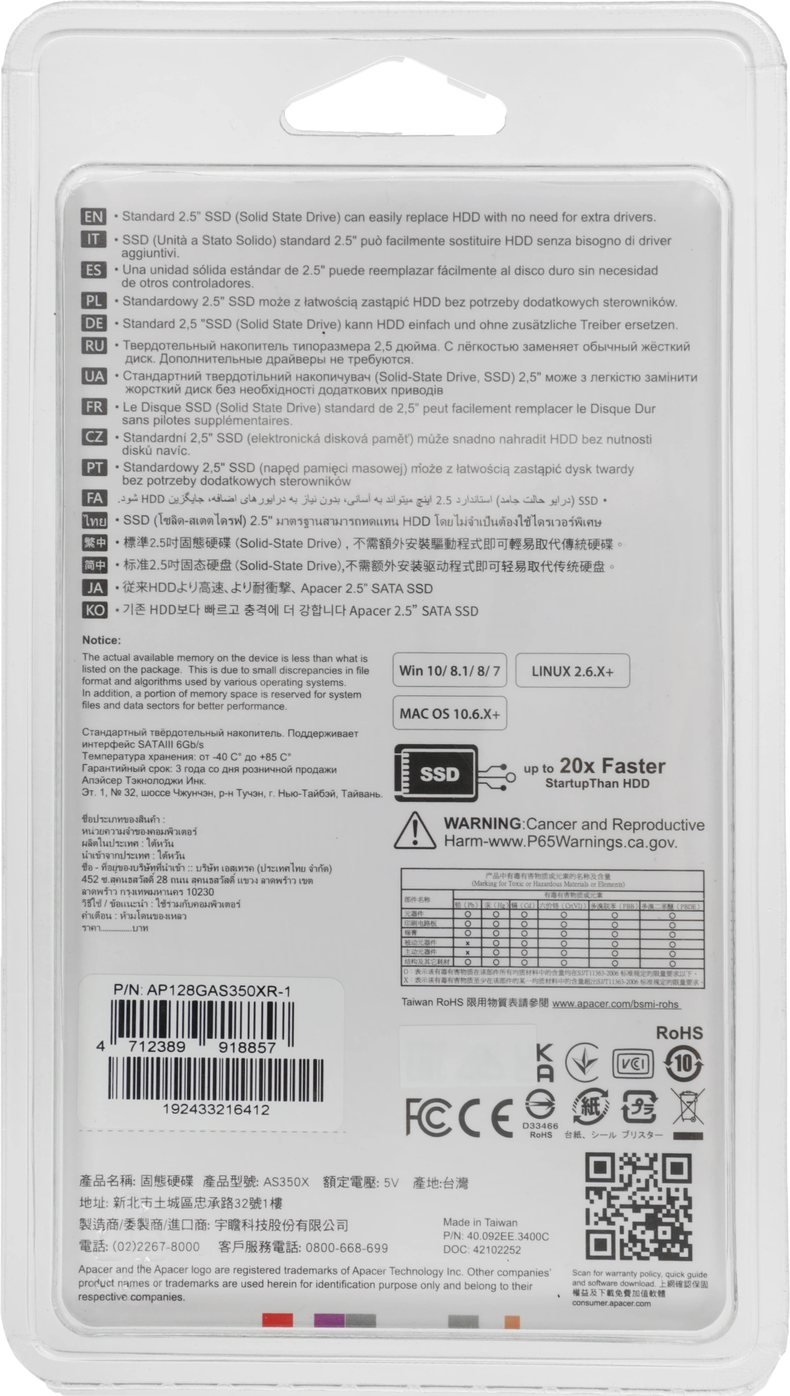 Накопитель SSD Apacer SATA-III 128GB AP128GAS350XR-1 AS350X