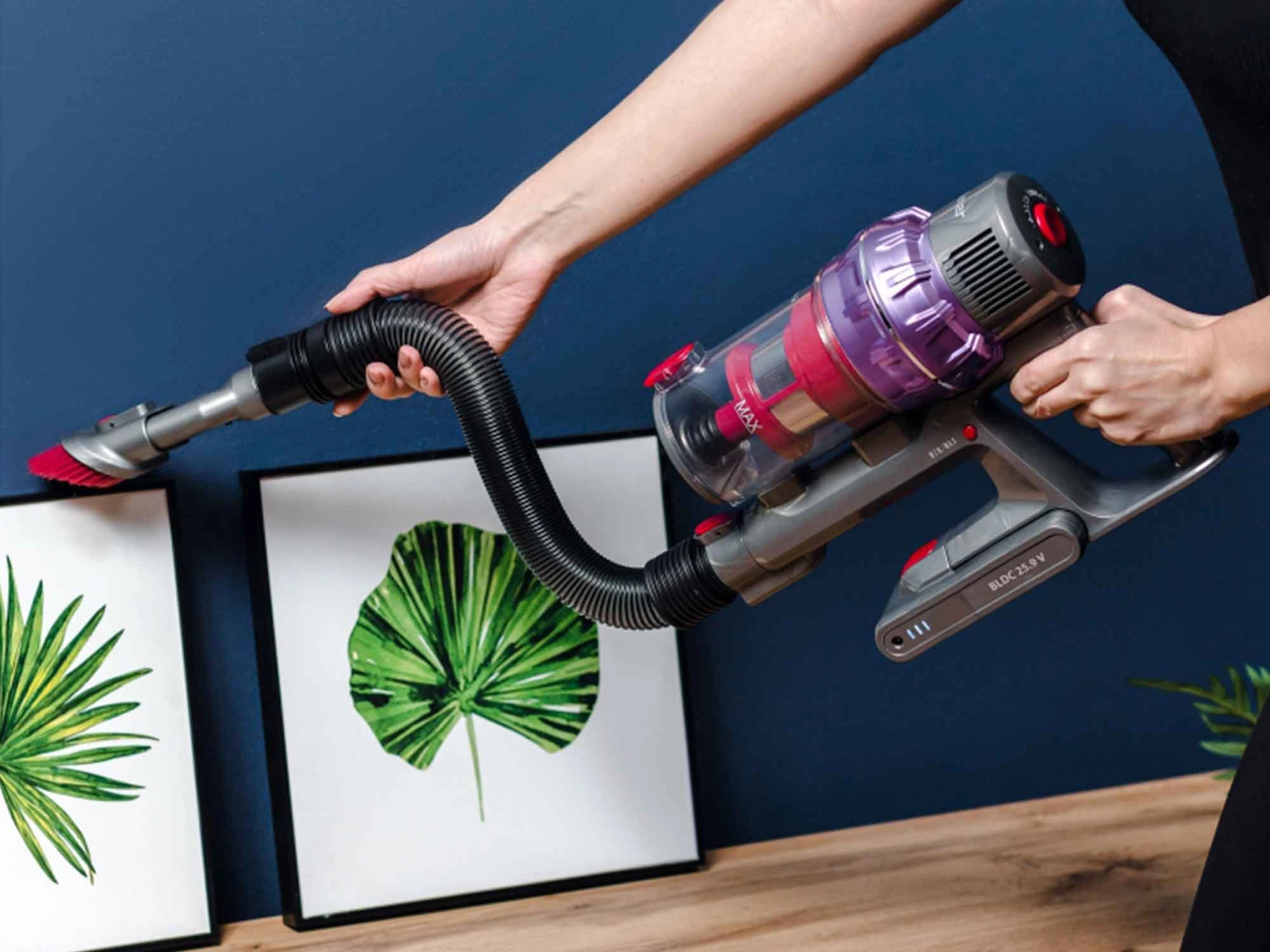 легко очищаемый пылесборник, настенное крепление, подсветка зоны уборки, шланг