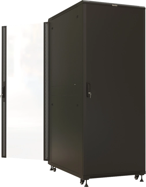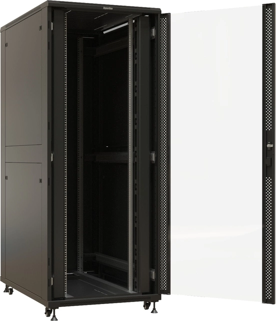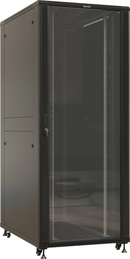 Шкаф серверный Hyperline (TTBR-4281-AS-RAL9004) напольный 42U 800x1000мм пер.дв.стекл задн.дв.спл.стал.лист 4 бок.пан. 1000кг черный 910мм 140.8кг 2055мм IP20 сталь