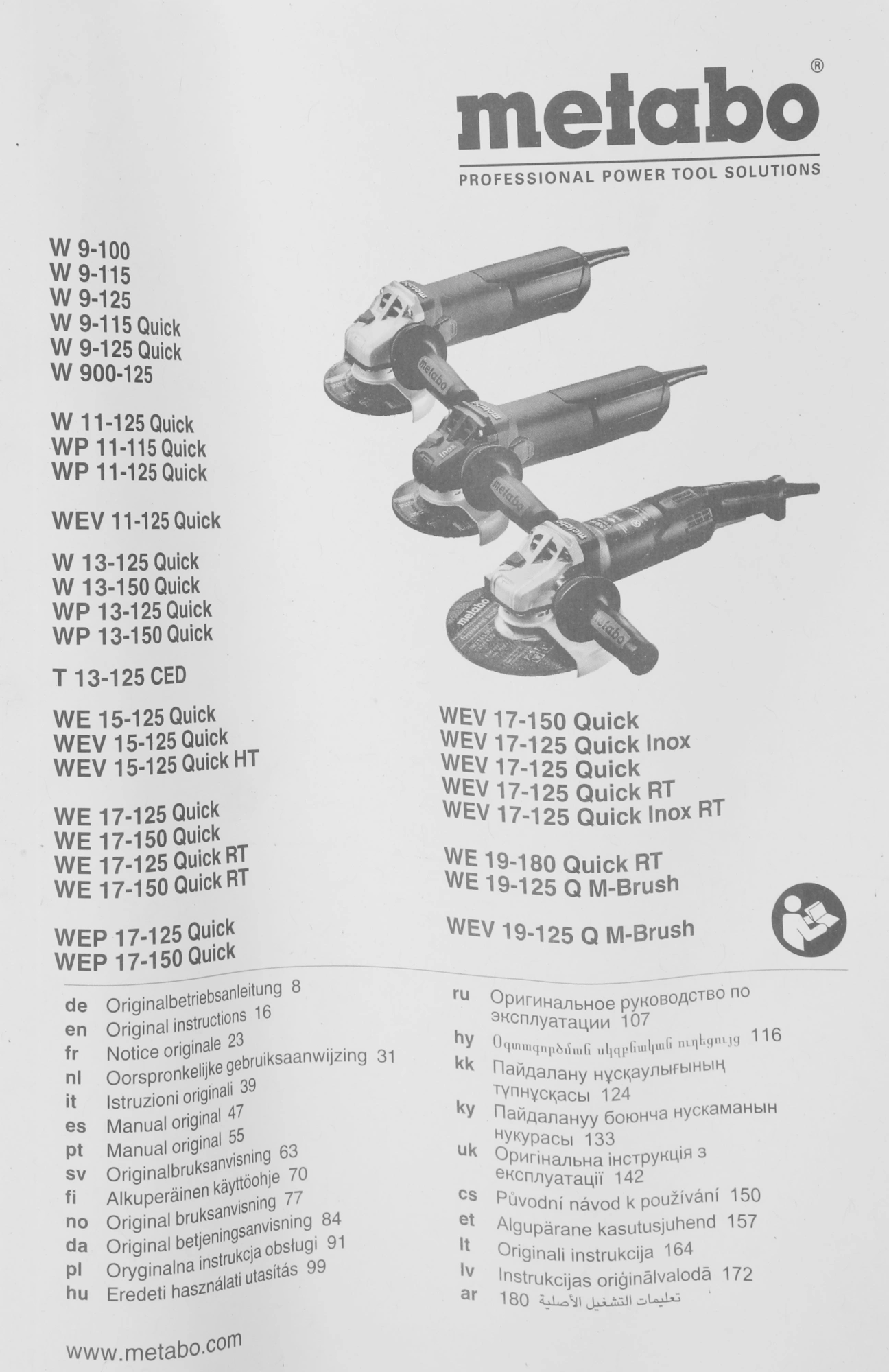 Углошлифовальная машина; Защитный кожух; Опорный фланец; Зажимная гайка M-Quick; Дополнительная рукоятка Metabo VibraTech (MVT)