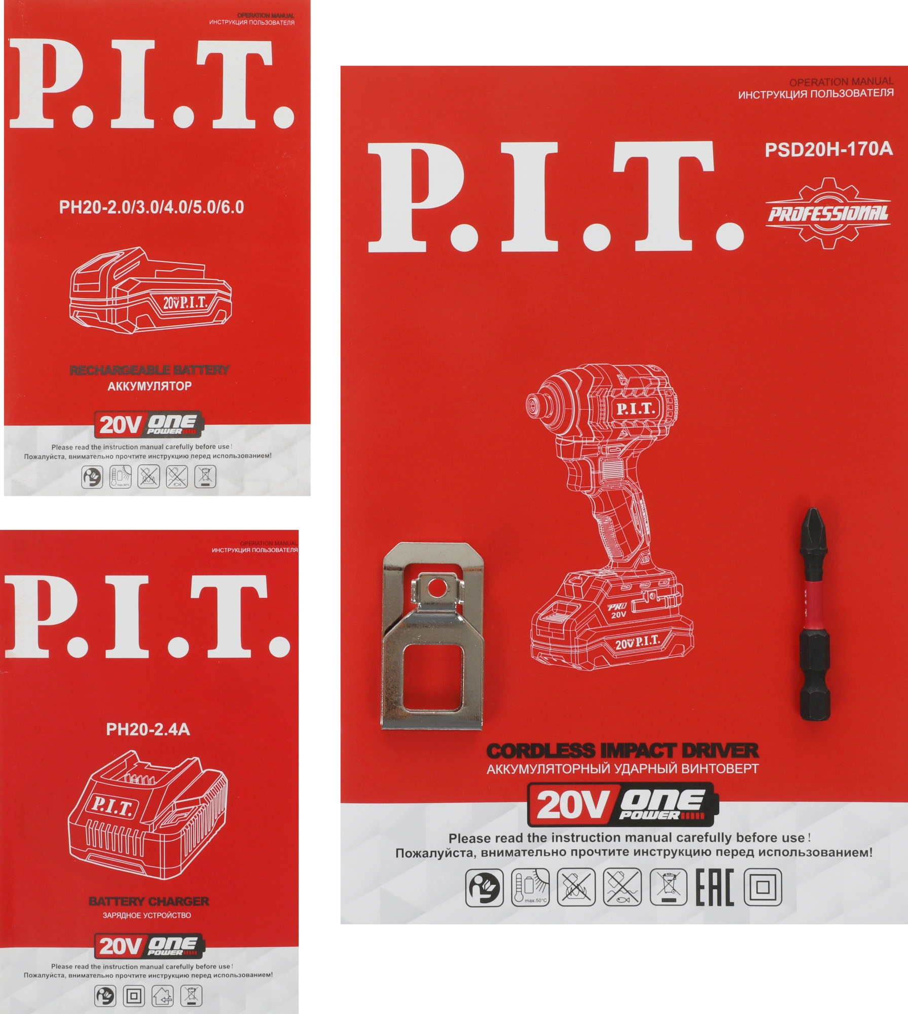 Винтоверт, бита двусторонняя, скоба металлическая, аккумулятор, зарядное устройство, кейс, руководство по эксплуатации.