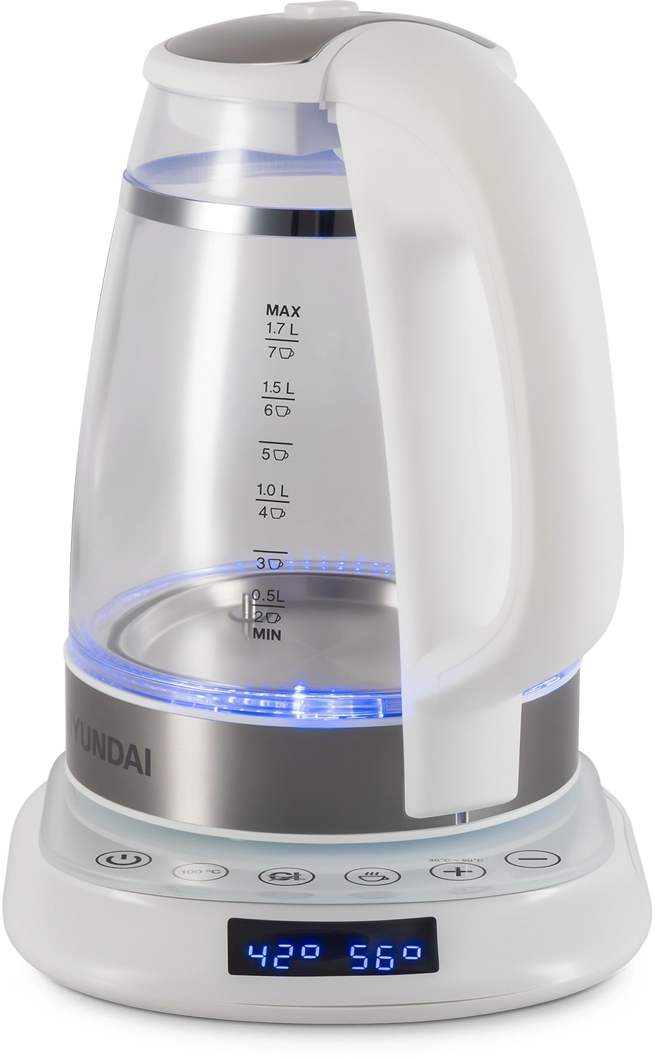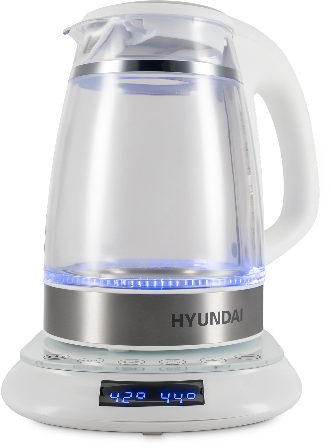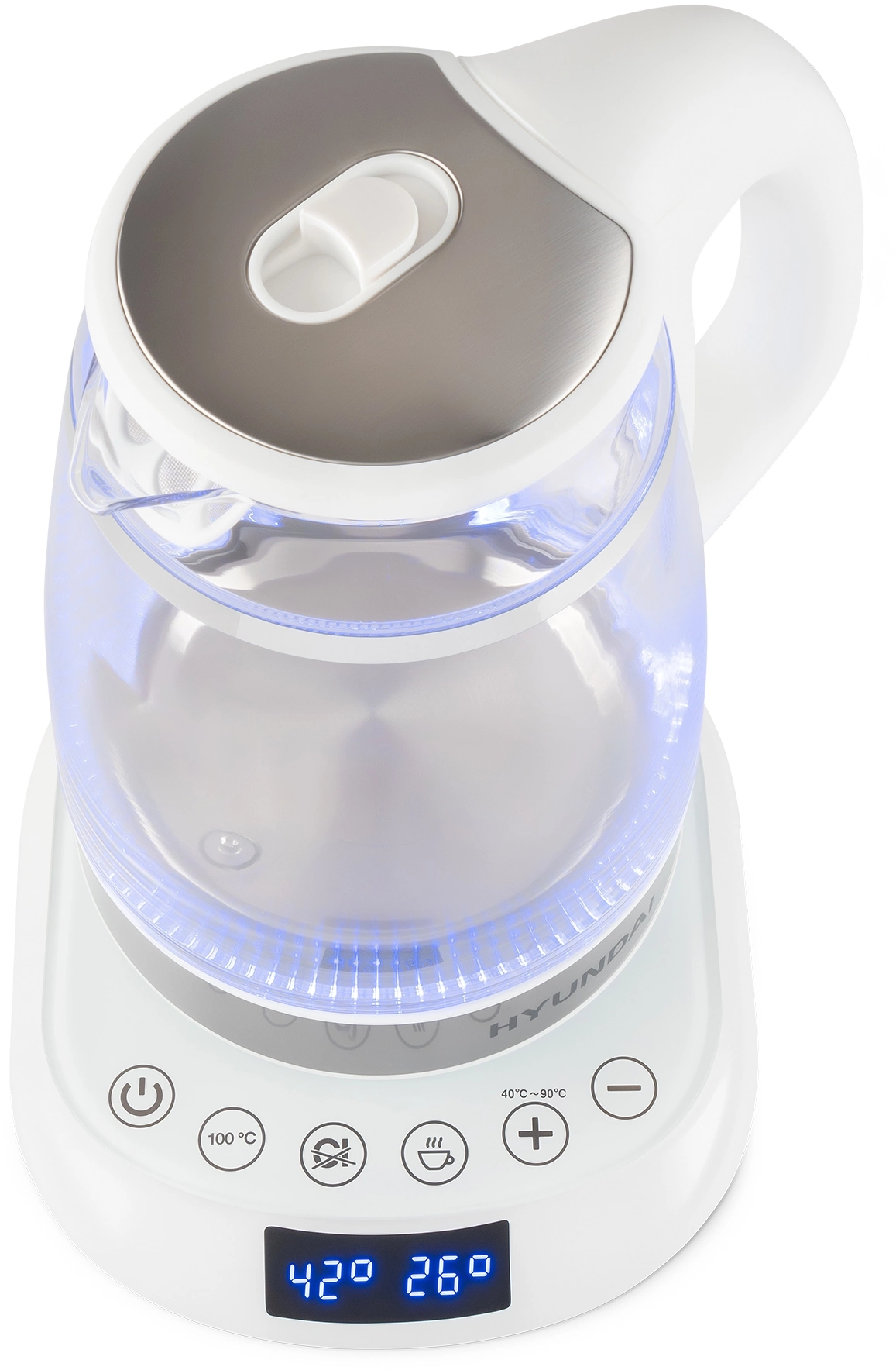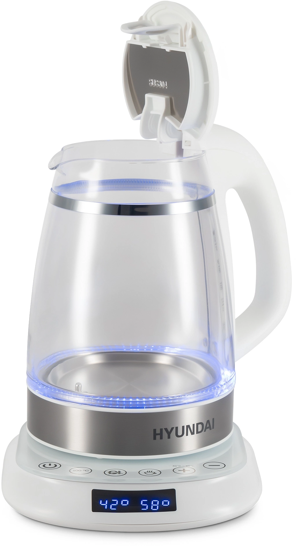 дисплей, кнопка открытия крышки, подсветка воды, подставка 360, фильтр от накипи