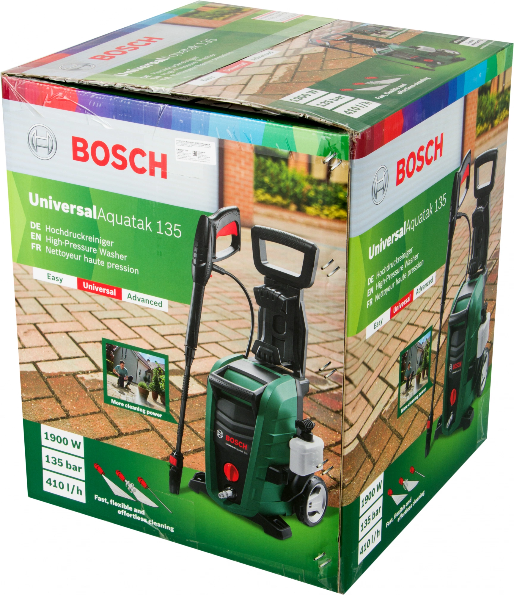 Высокая производительность UniversalAquatak 135 сочетается с возможностью компактного хранения инструмента. Защиту инструмента обеспечивают надежная и мощная металлическая помпа, а также внешний фильтр. Также мойка может работать без подключения к водопроводу благодаря функции самовсасывания.