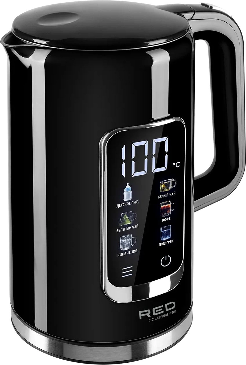 RED AM120D Colorsense - электрический чайник с большим светодиодным дисплеем, на котором отображаются режимы нагрева и температура воды. Благодаря двойной стенке вода в чайнике остывает медленнее, а корпус не нагревается, даже когда вода кипит.