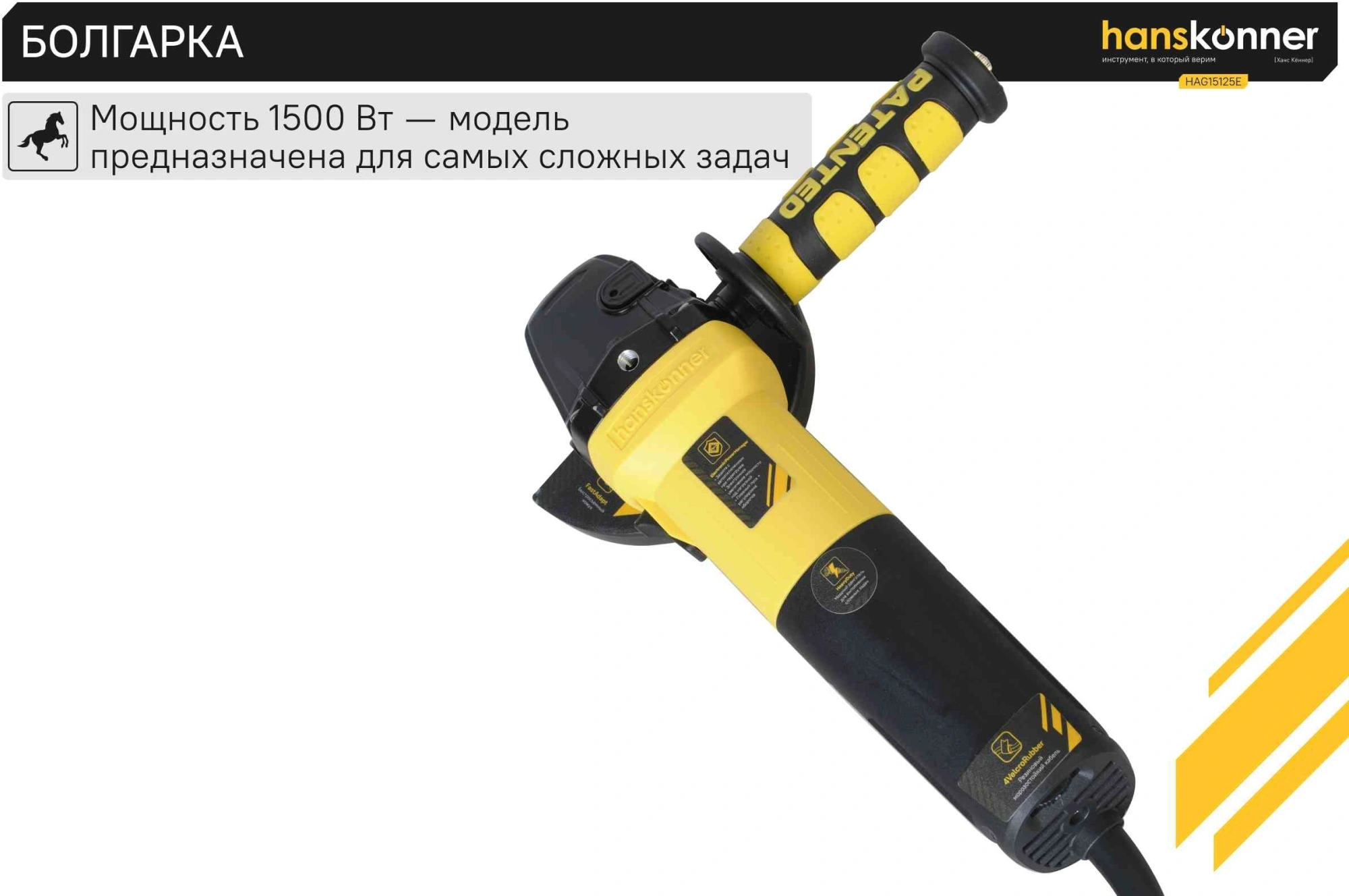 Углошлифовальная машина, быстросъемный защитный кожух, боковая рукоятка, разметочный карандаш с твердосплавным наконечником, фланцевый ключ, винт с гайкой, инструкция по эксплуатации, инструкция по безопасности.