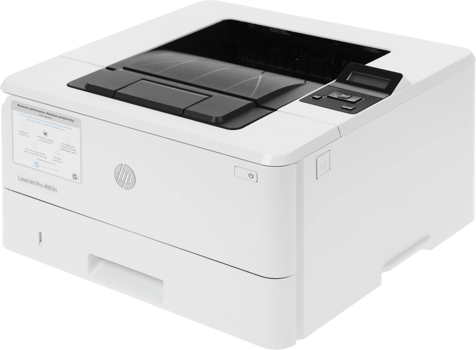 2Z611A Принтер HP LaserJet Pro 4003n; предустановленный оригинальный лазерный картридж для HP LaserJet, черный (2900 страниц); руководство по началу работы; листовка с информацией о поддержке; руководство по гарантии; листовка с нормативными