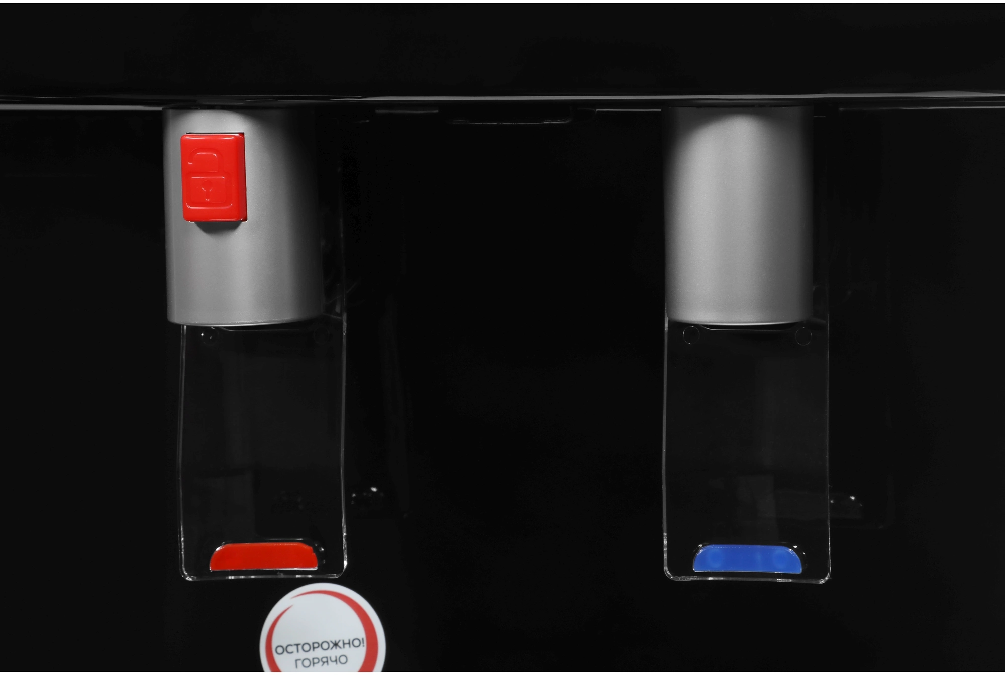 Кулер оснащен индикаторами работы и простыми в использовании краниками подачи воды. Система блокировки горячей воды предотвращает случайные ожоги, что особенно важно для семей с детьми.
