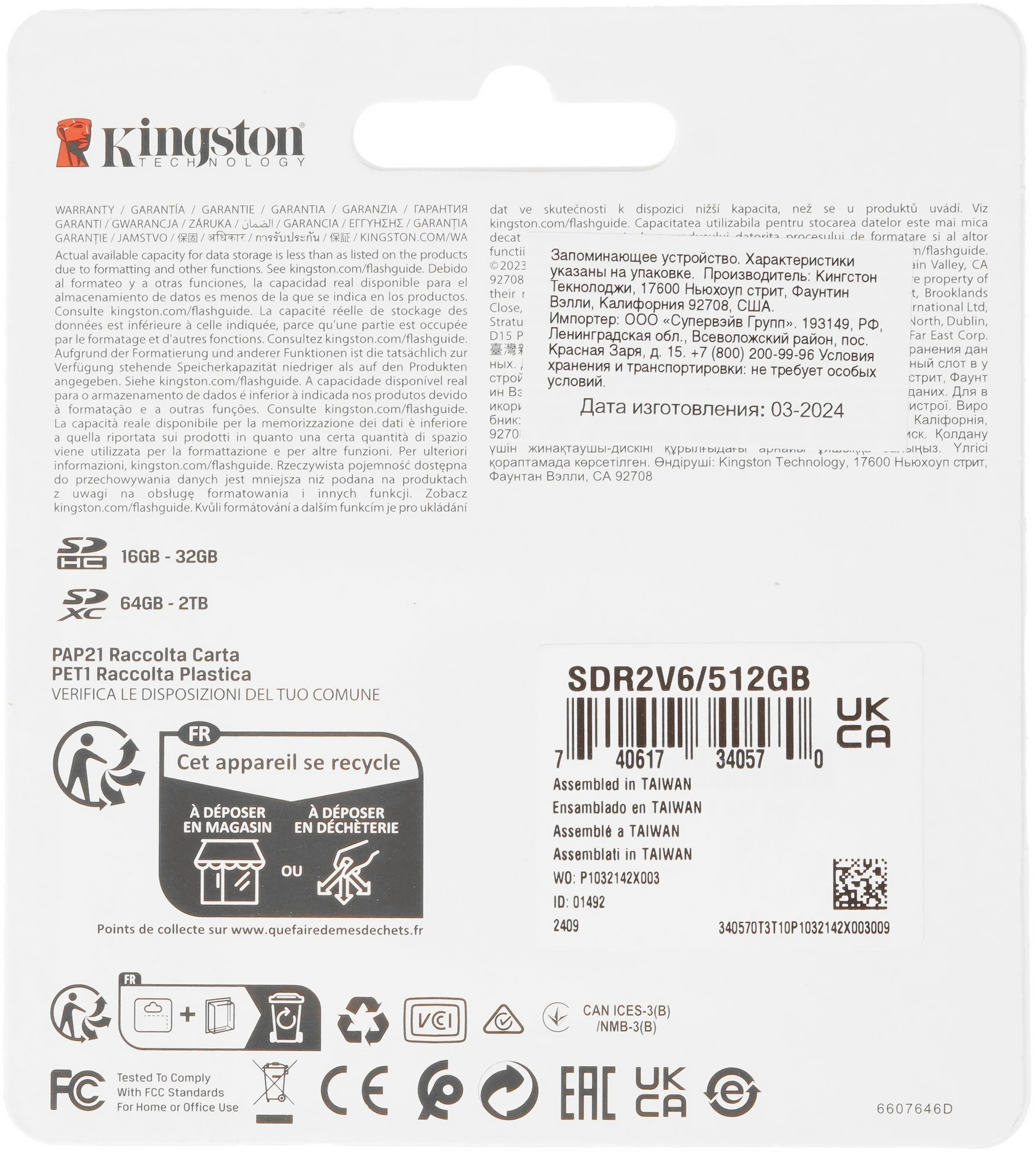Флеш карта SDXC 512GB Kingston SDR2V6/512GB
