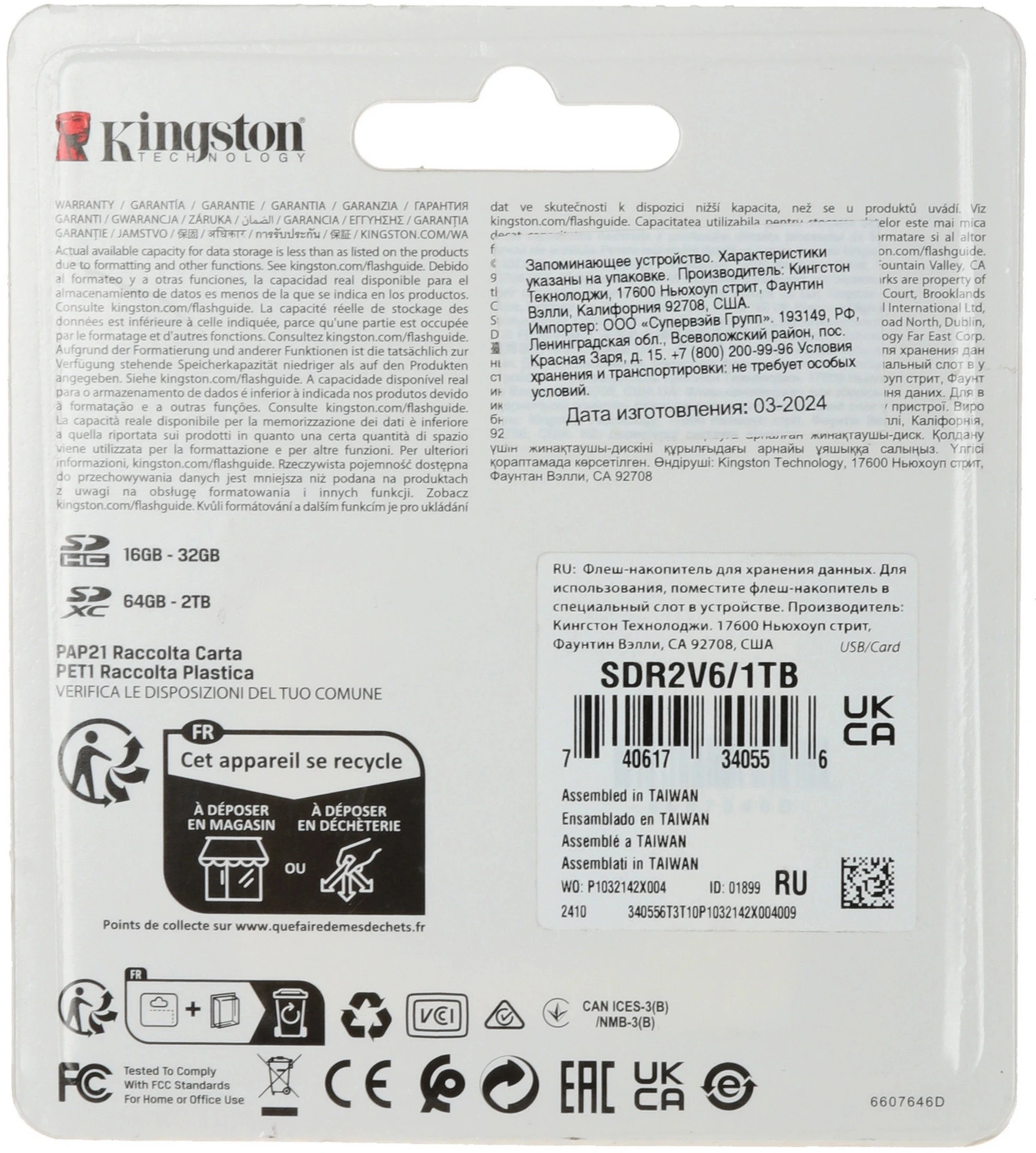 Флеш карта SDXC 1TB Kingston SDR2V6/1TB
