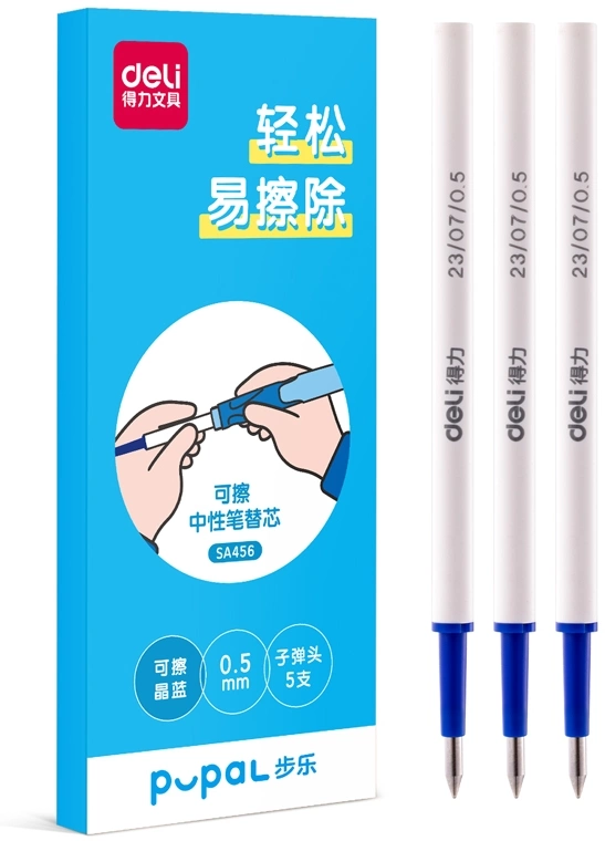 Стержень для гелевых ручек Deli (SA456BLUE) 0.5мм пулевидныйпиш. наконечник стираемые чернила синий (5шт)